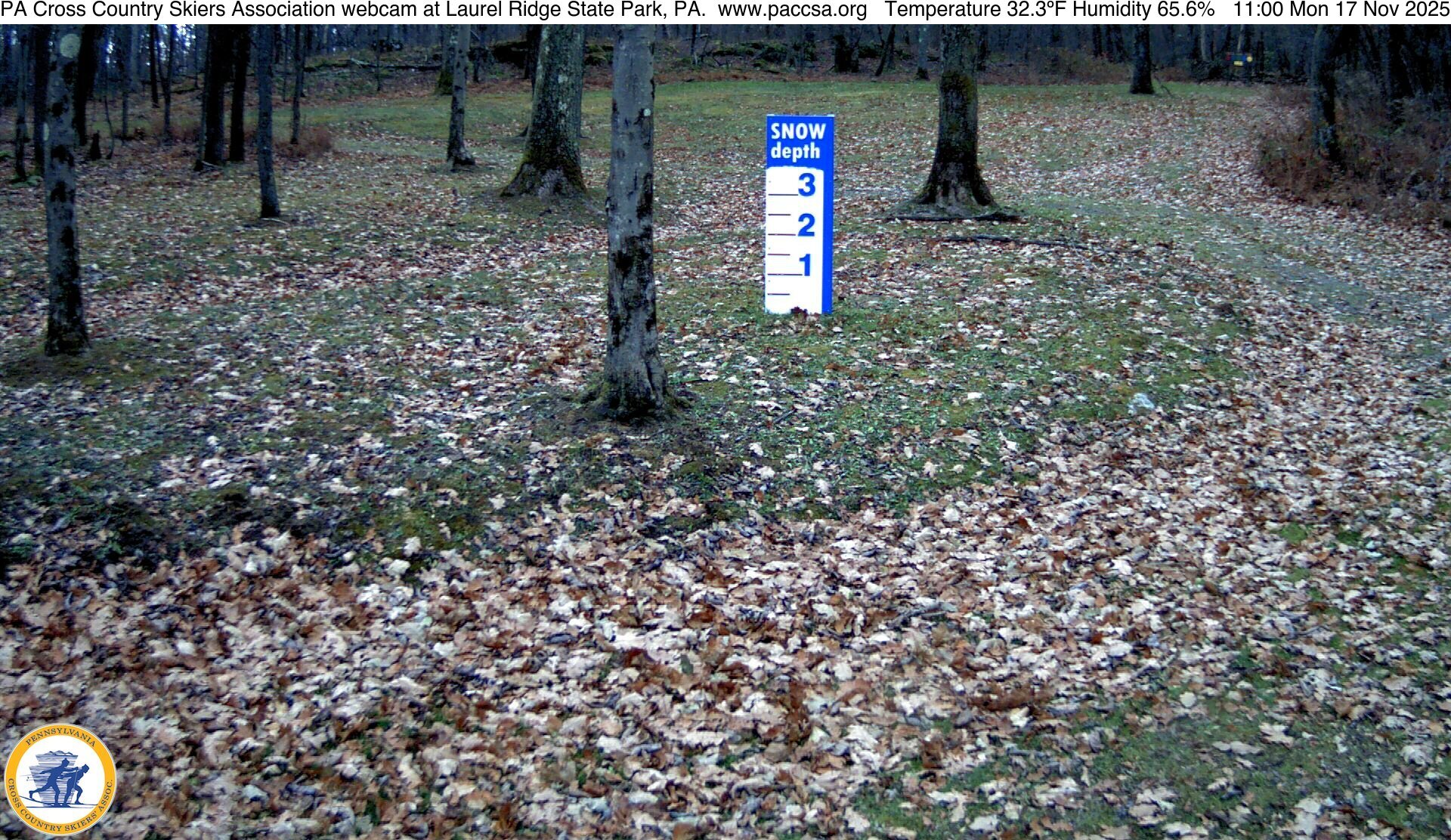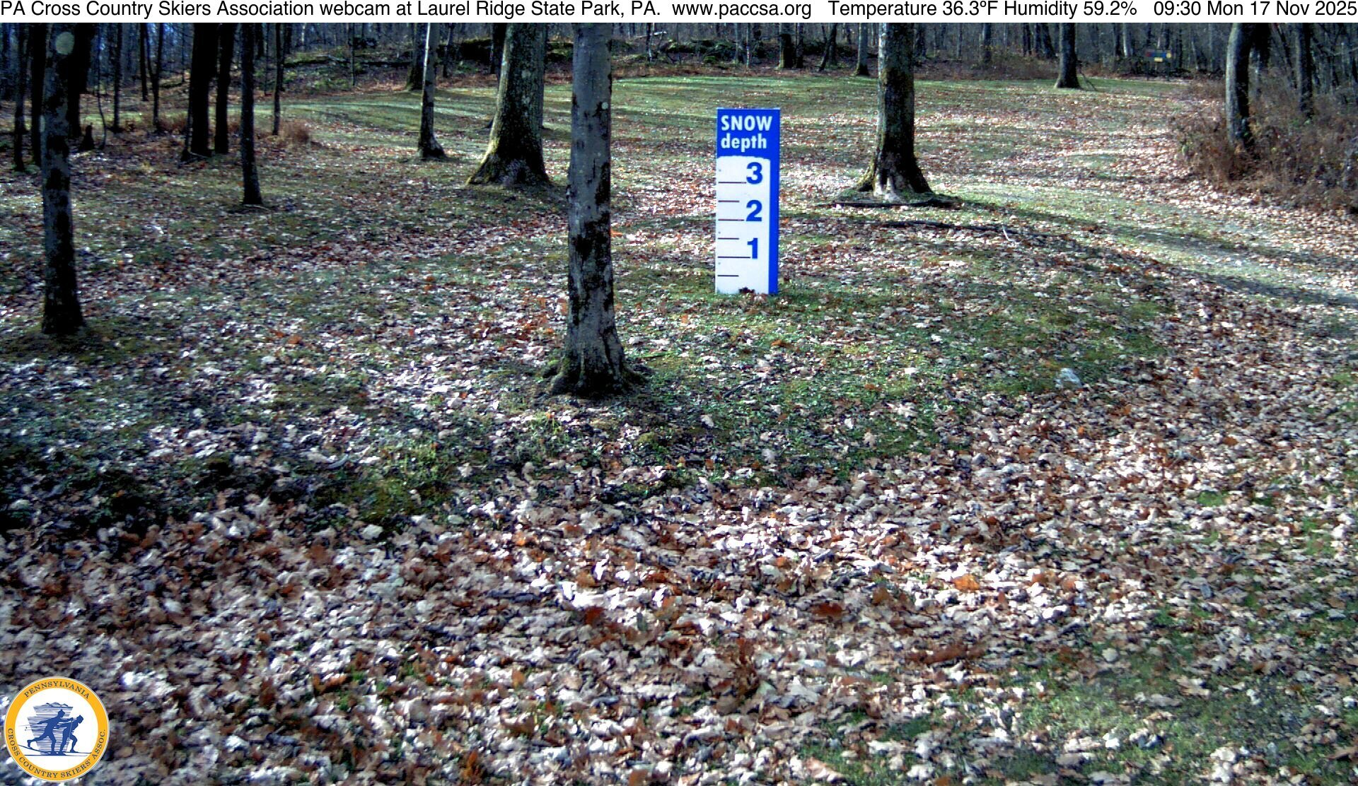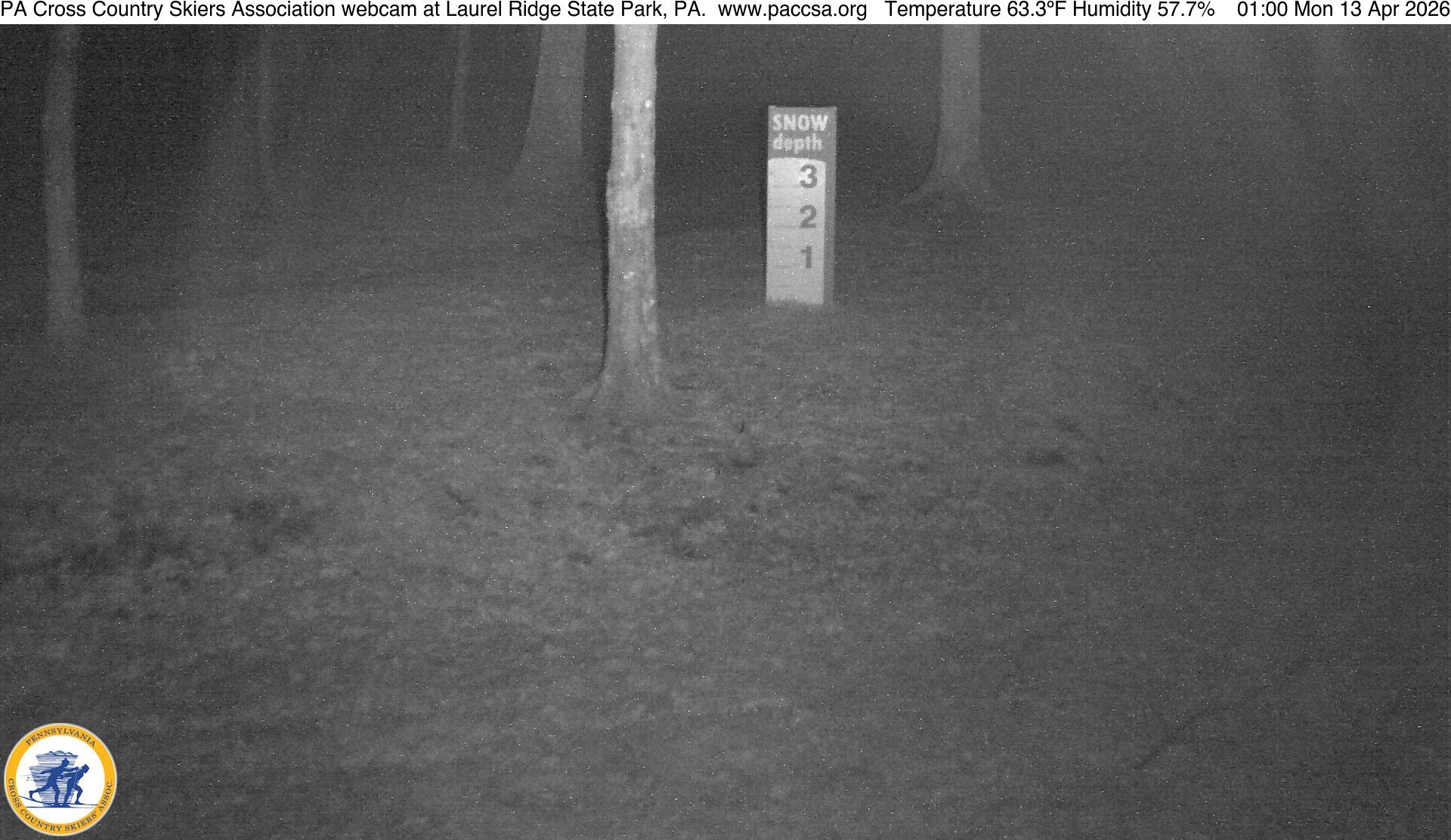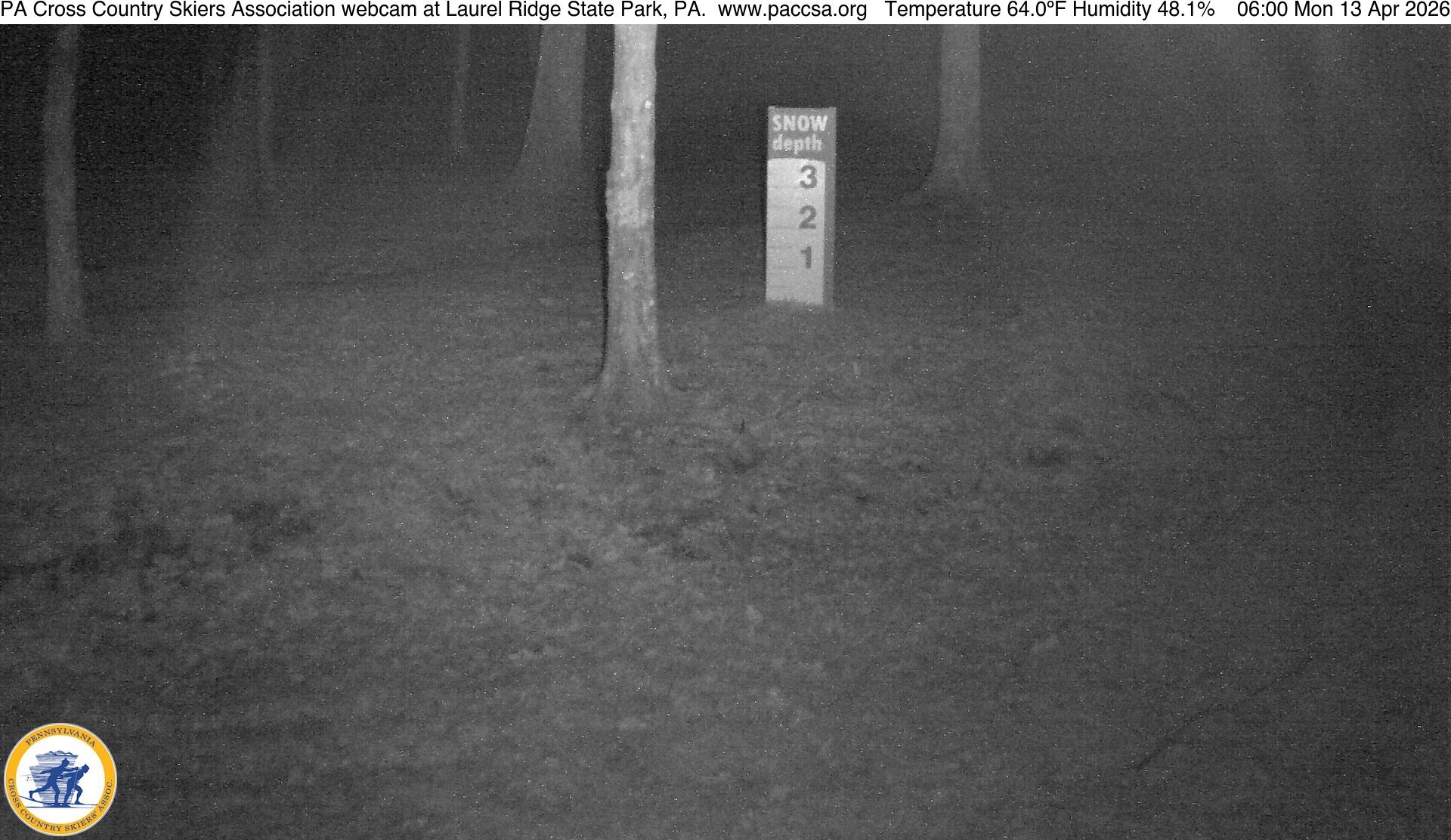 The webcam at Laurel Ridge State Park cross country ski area is owned and maintained by PACCSA, with the support of DCNR and donations from the public. Thank you to everyone who has contributed. The webcam operates from fall to spring, taking a photo of the ski area every half hour from sunrise to sunset. The ground elevation where it is sited is 852 m, 2795 ft.