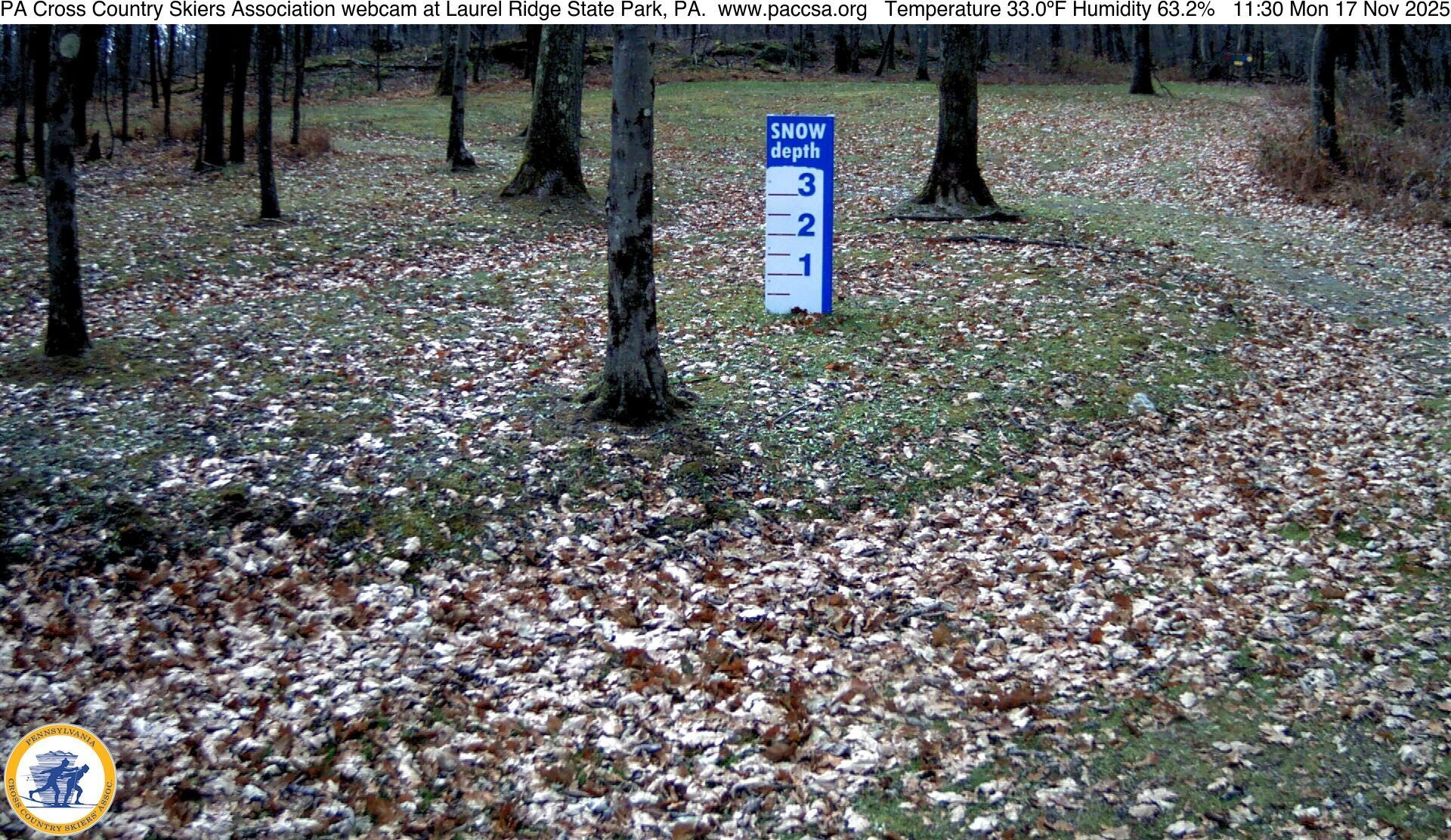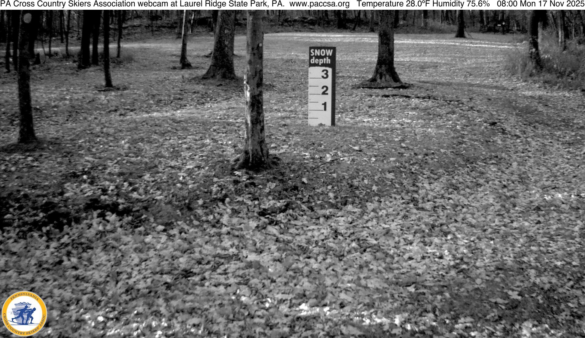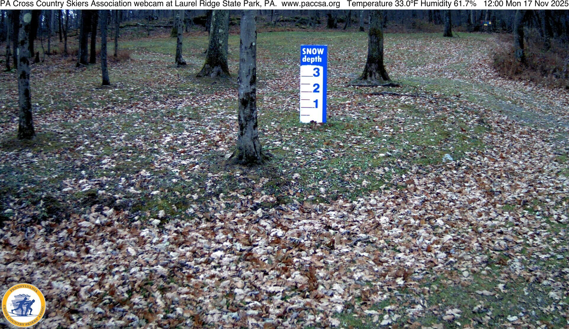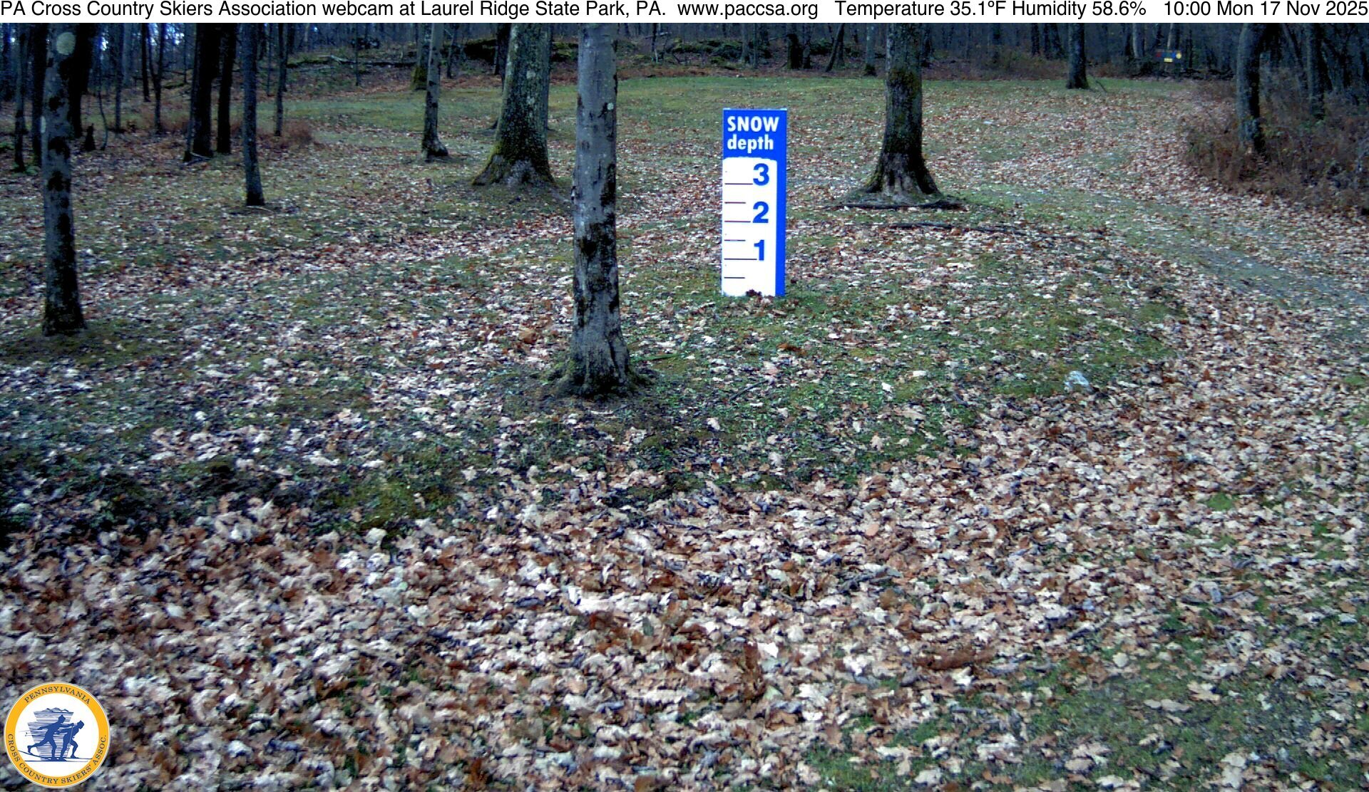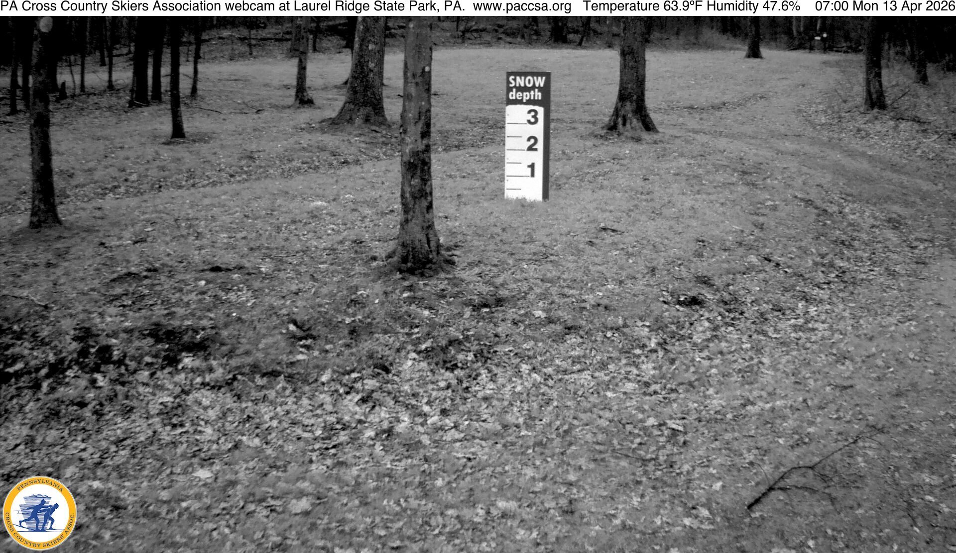 The webcam at Laurel Ridge State Park cross country ski area is owned and maintained by PACCSA, with the support of DCNR and donations from the public. Thank you to everyone who has contributed. The webcam operates from fall to spring, taking a photo of the ski area every half hour from sunrise to sunset. The ground elevation where it is sited is 852 m, 2795 ft.
