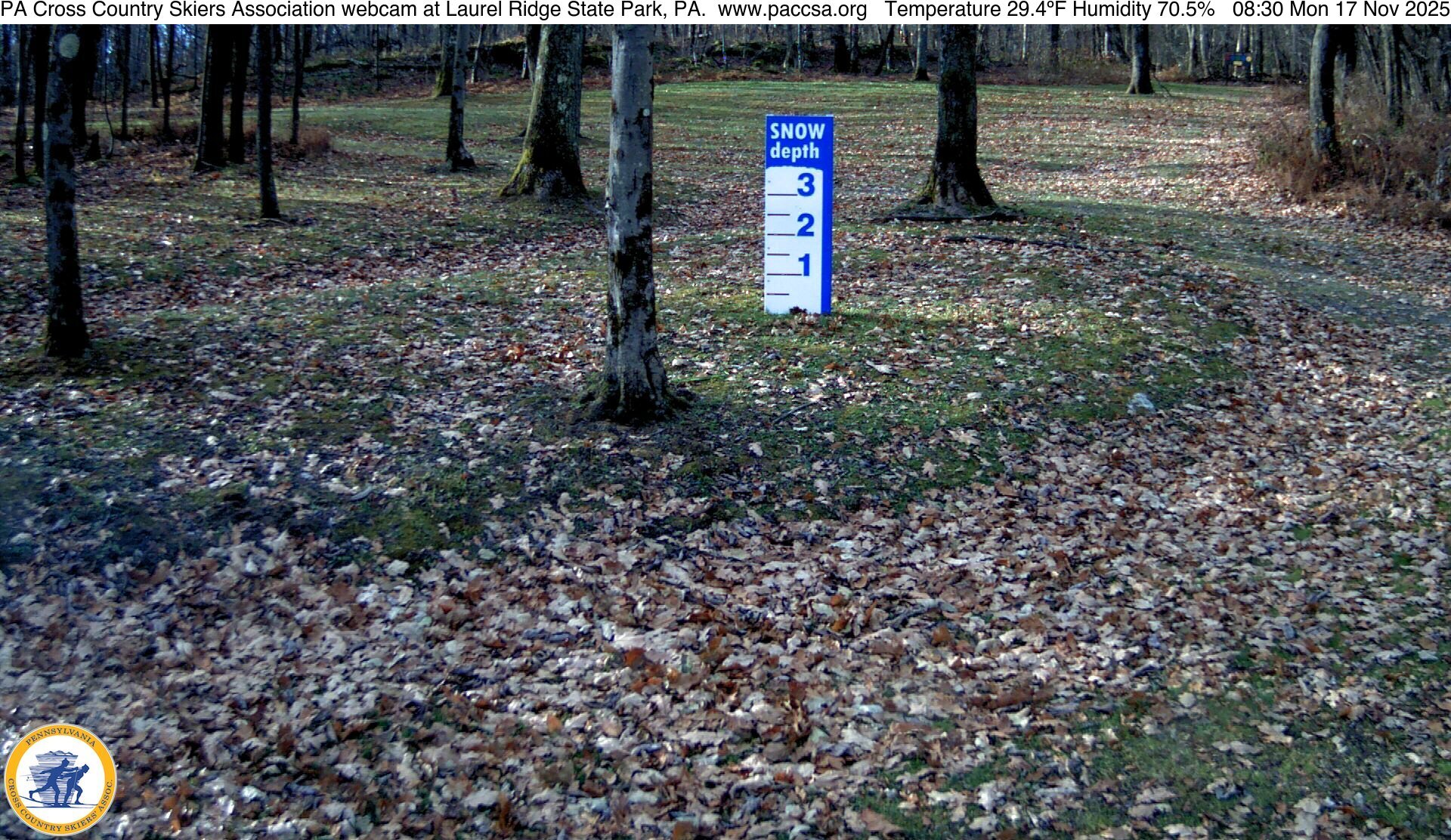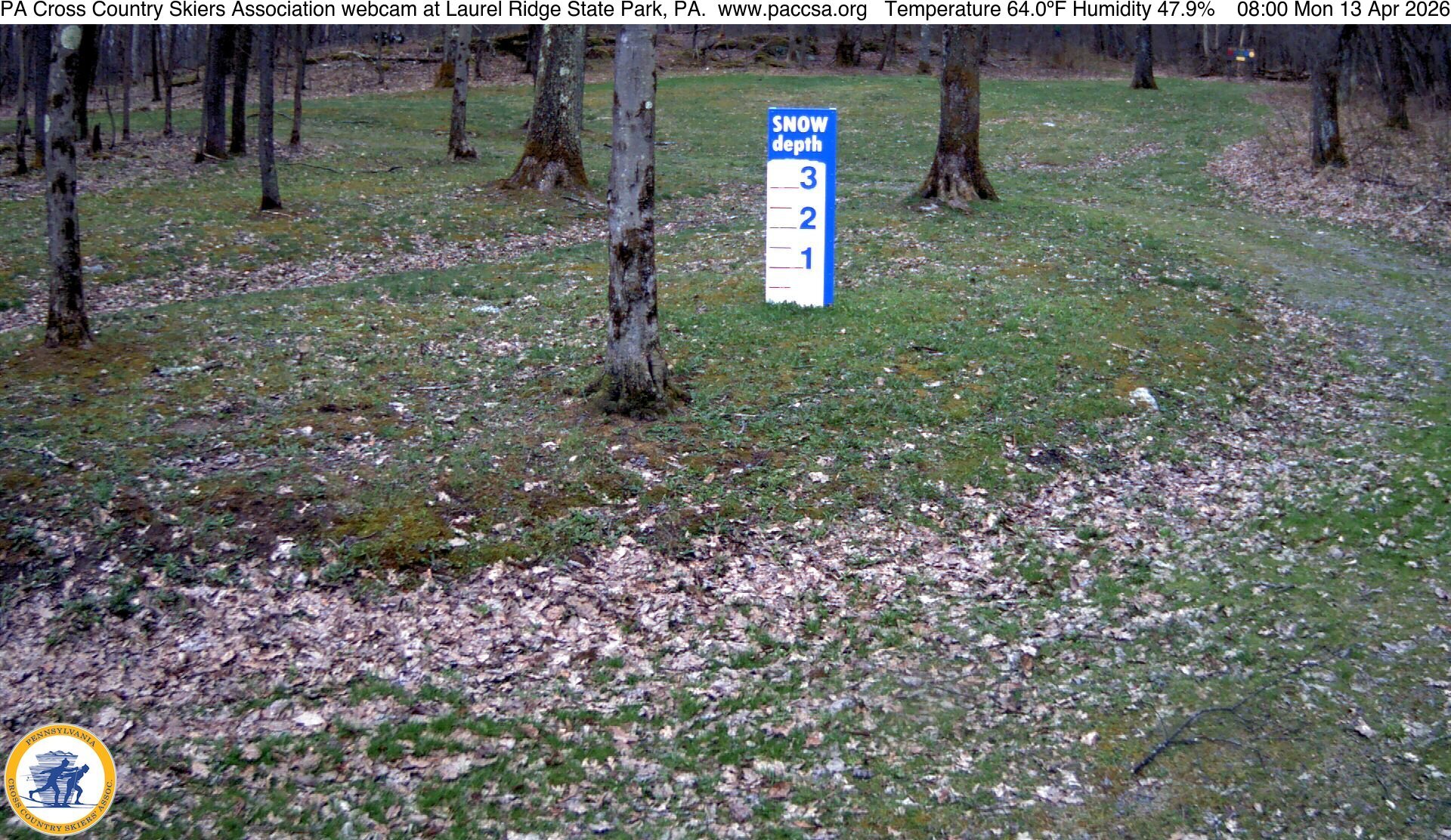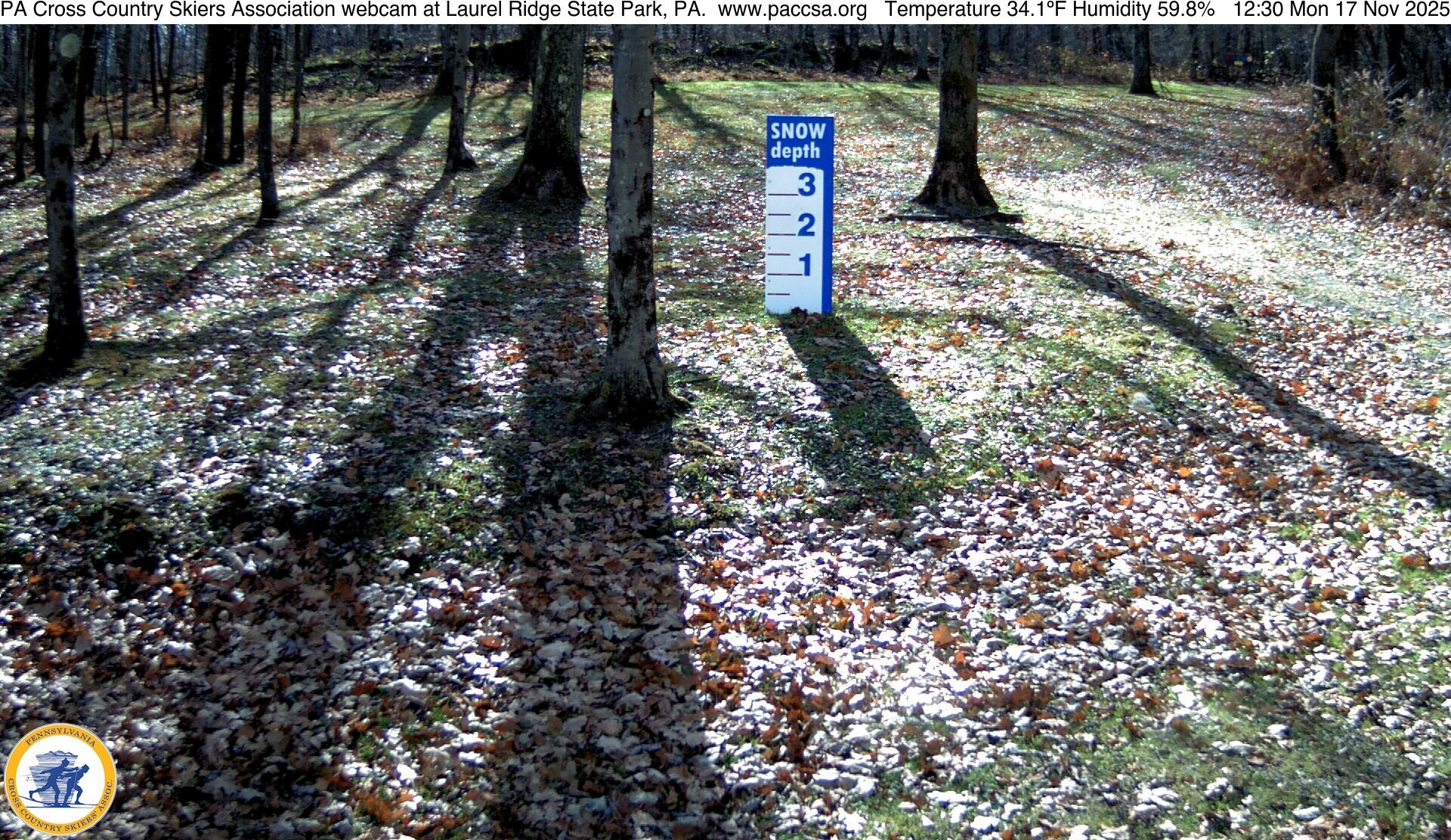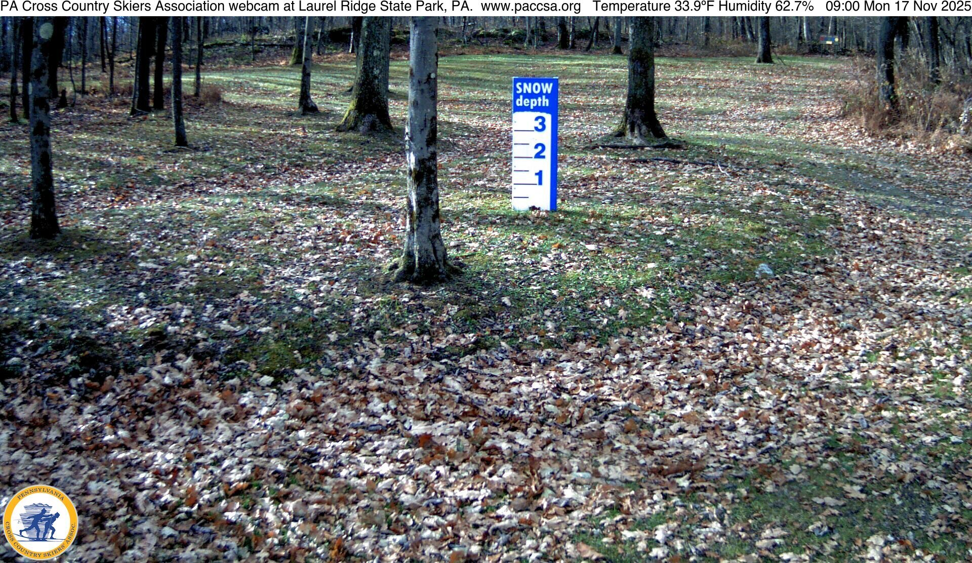 The webcam at Laurel Ridge State Park cross country ski area is owned and maintained by PACCSA, with the support of DCNR and donations from the public. Thank you to everyone who has contributed. The webcam operates from fall to spring, taking a photo of the ski area every half hour from sunrise to sunset. The ground elevation where it is sited is 852 m, 2795 ft.