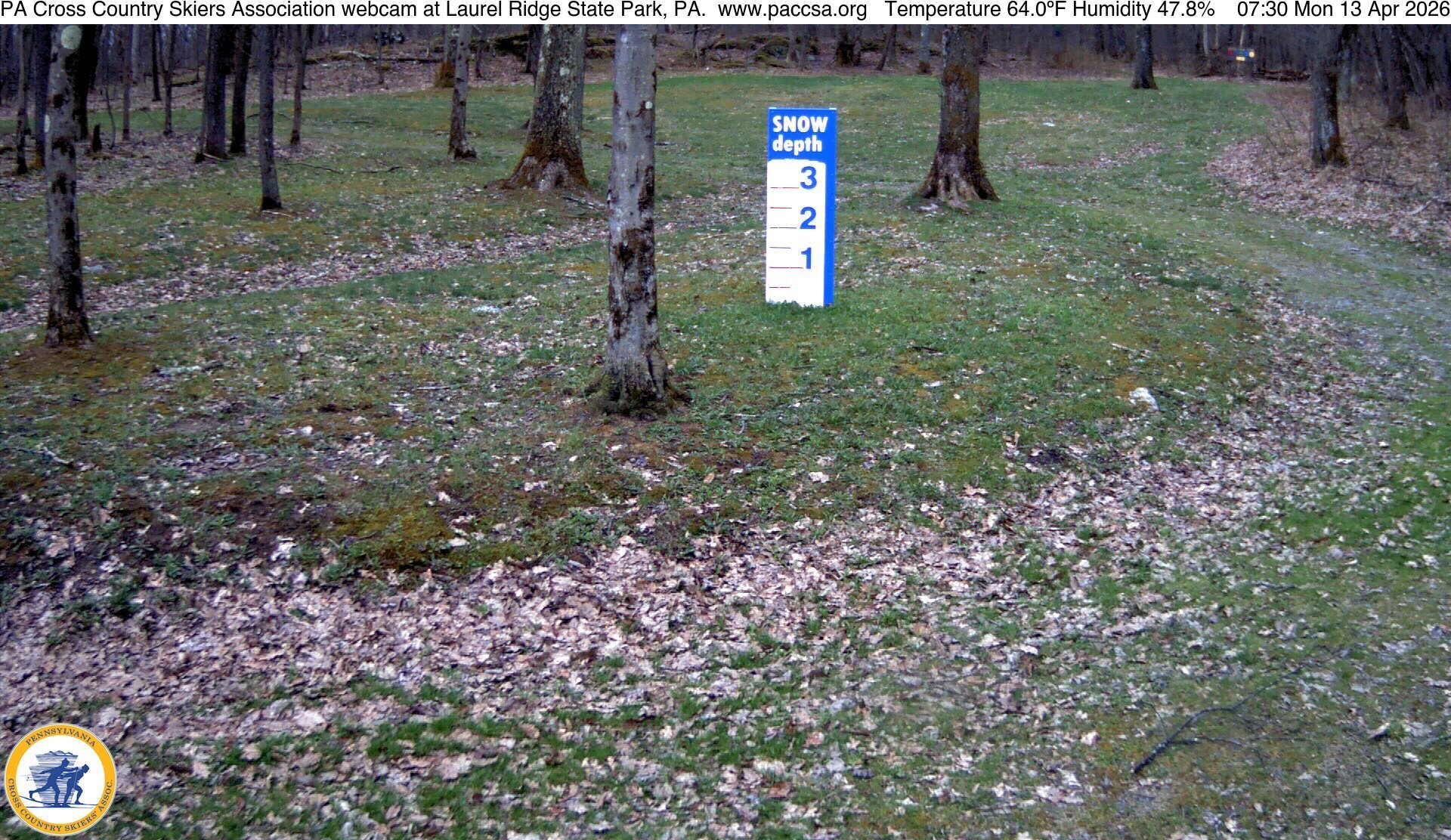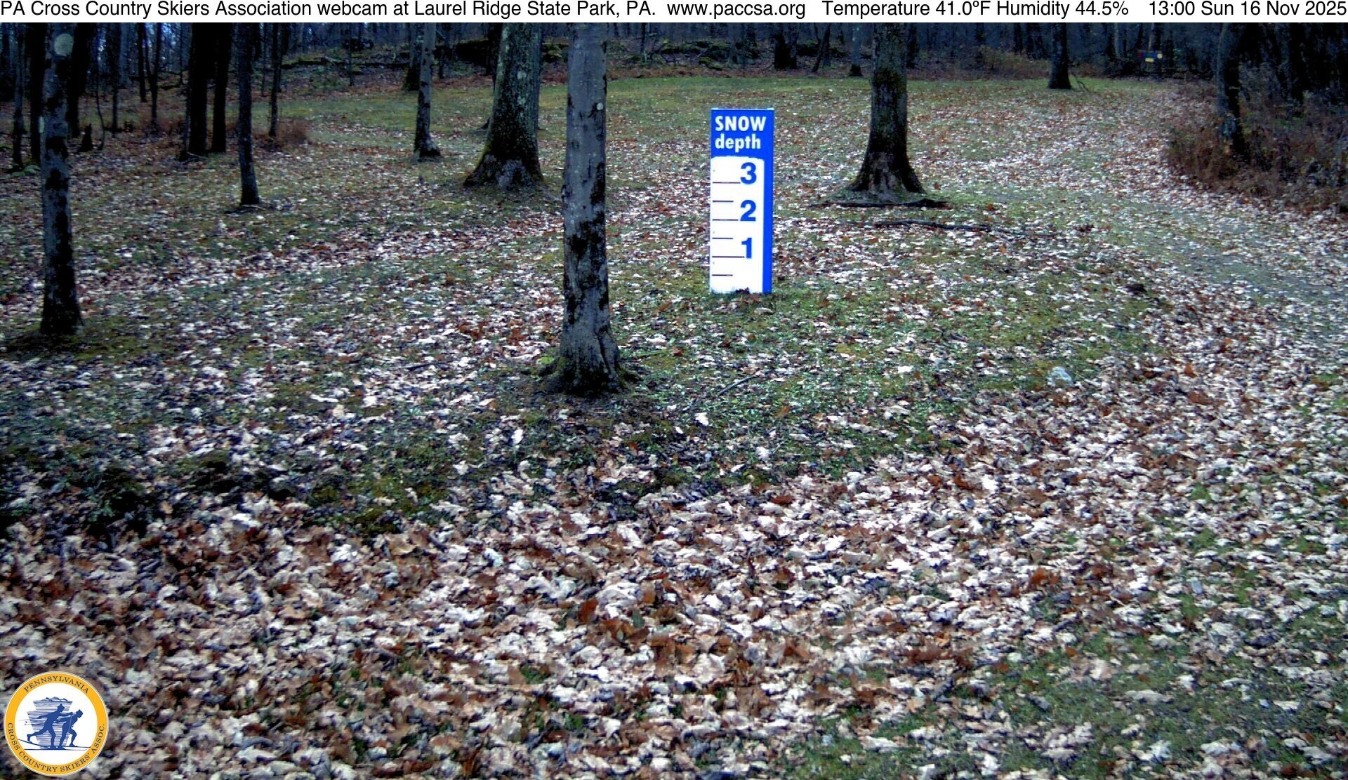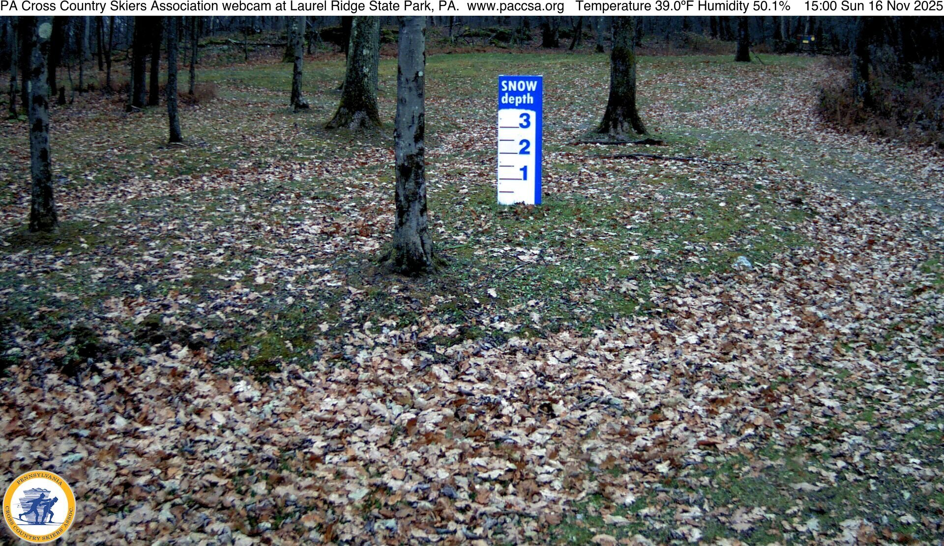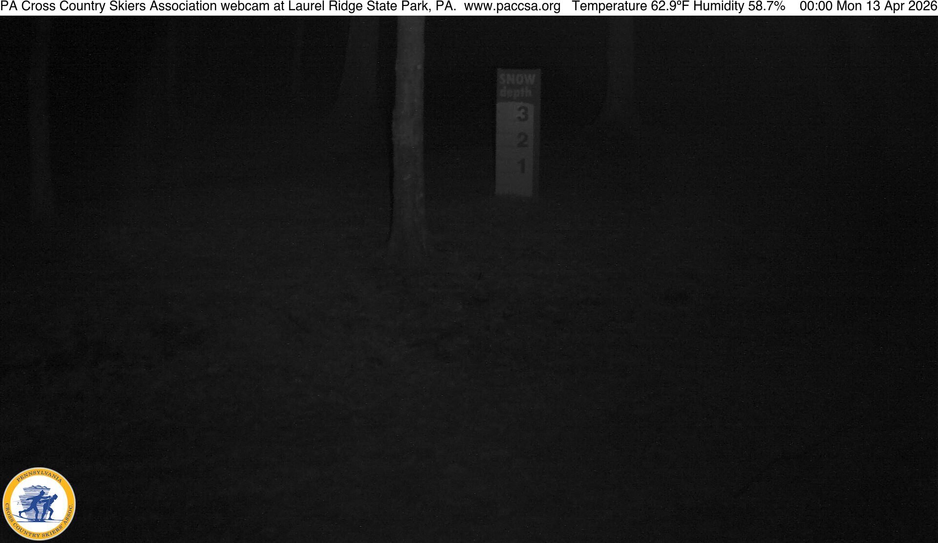 The webcam at Laurel Ridge State Park cross country ski area is owned and maintained by PACCSA, with the support of DCNR and donations from the public. Thank you to everyone who has contributed. The webcam operates from fall to spring, taking a photo of the ski area every half hour from sunrise to sunset. The ground elevation where it is sited is 852 m, 2795 ft.