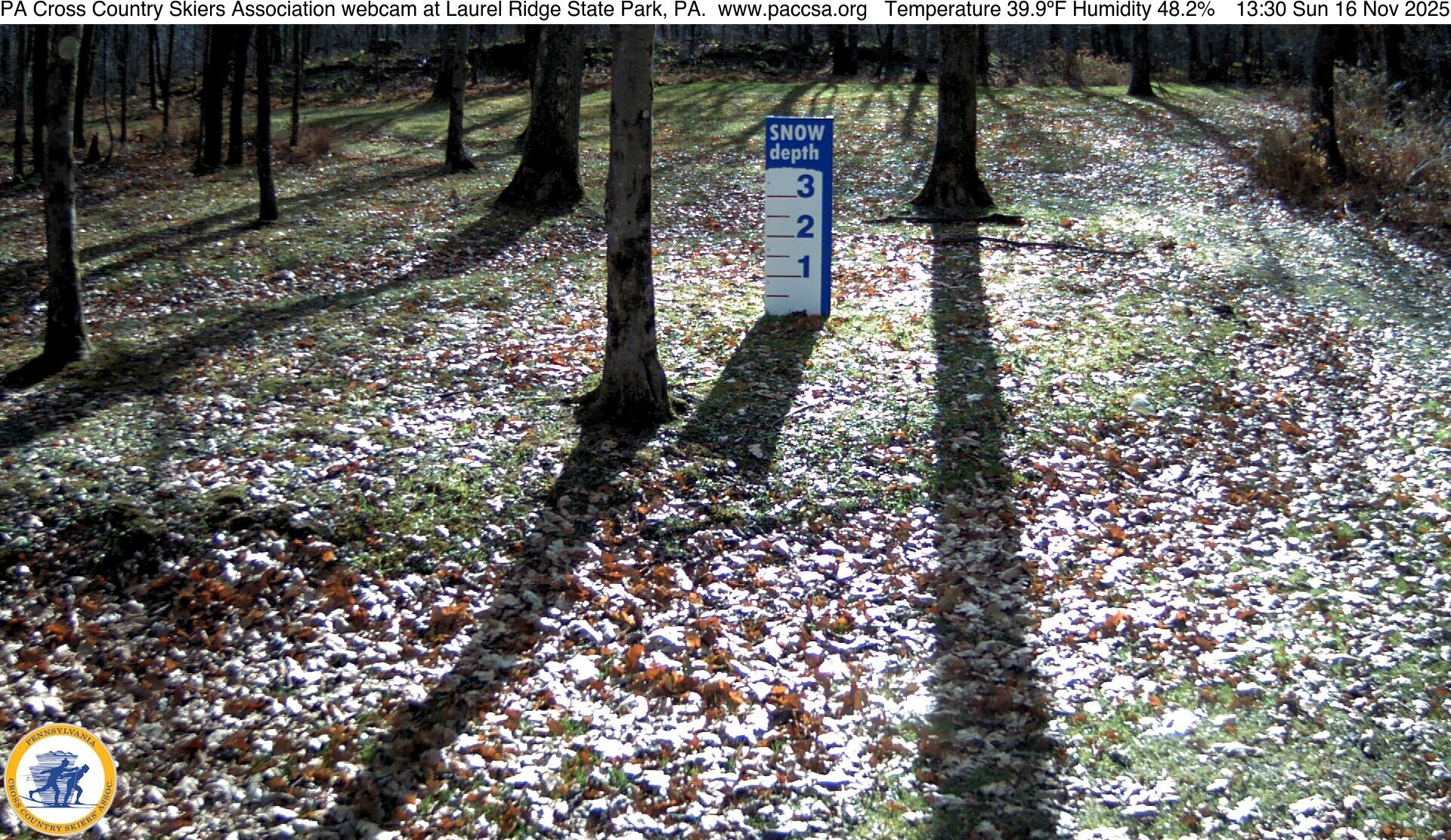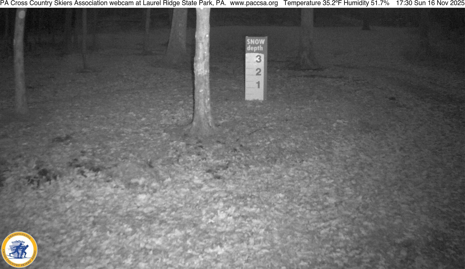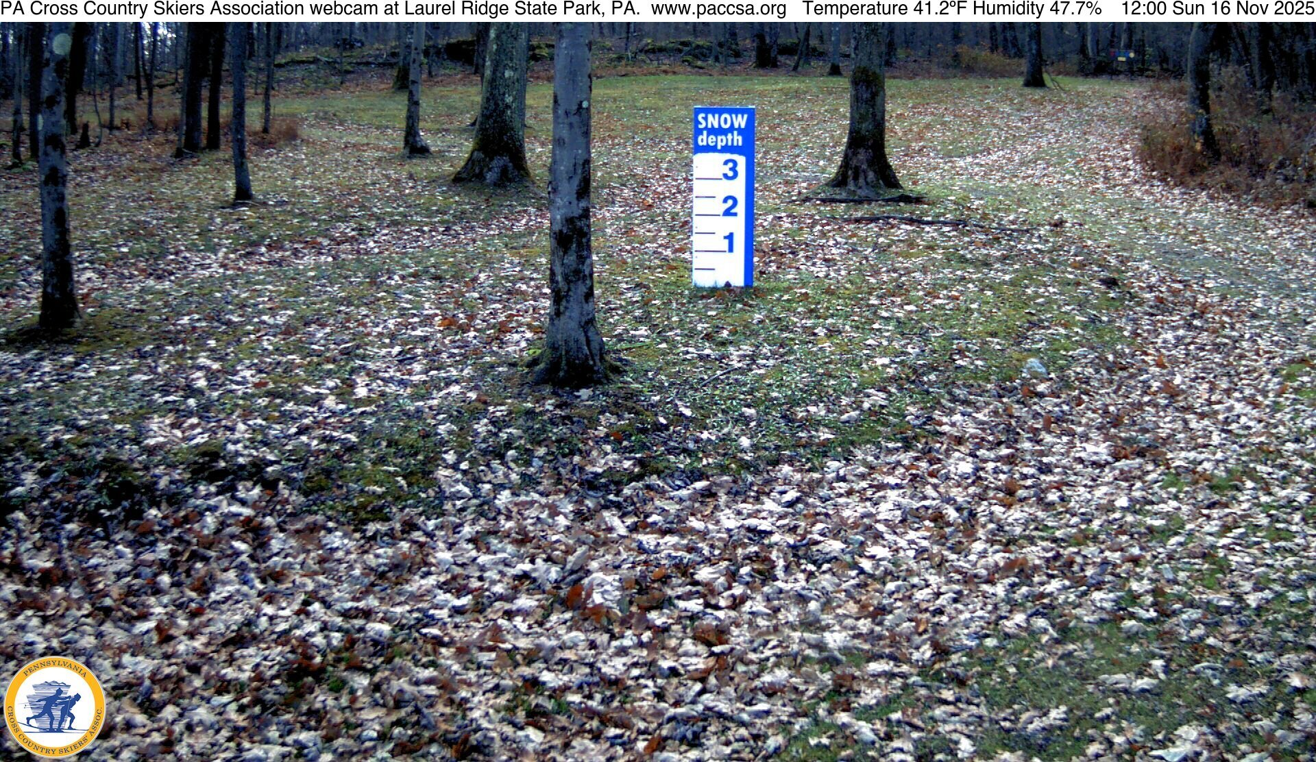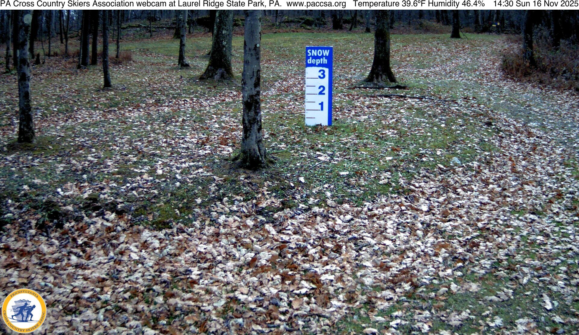 The webcam at Laurel Ridge State Park cross country ski area is owned and maintained by PACCSA, with the support of DCNR and donations from the public. Thank you to everyone who has contributed. The webcam operates from fall to spring, taking a photo of the ski area every half hour from sunrise to sunset. The ground elevation where it is sited is 852 m, 2795 ft.