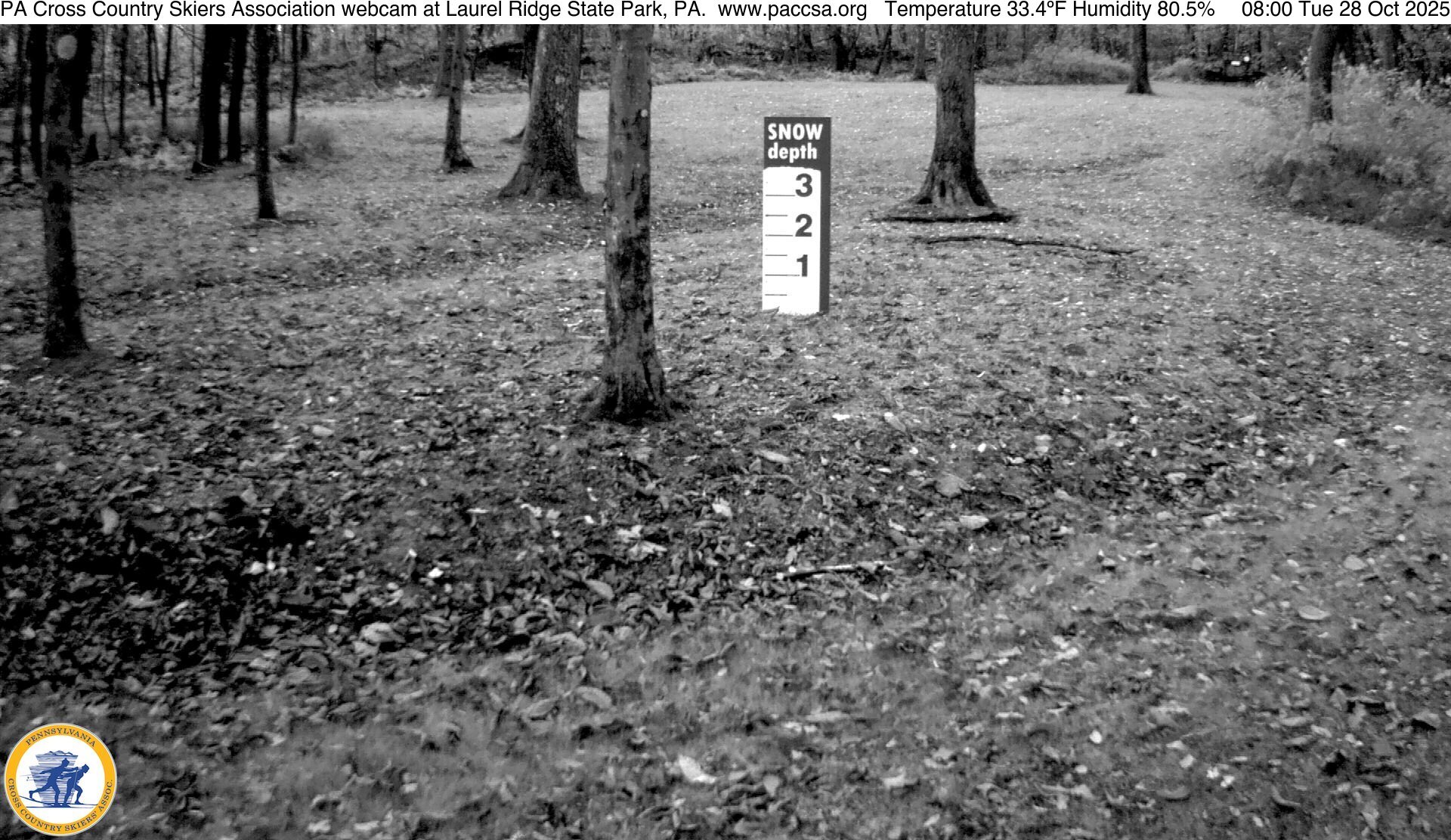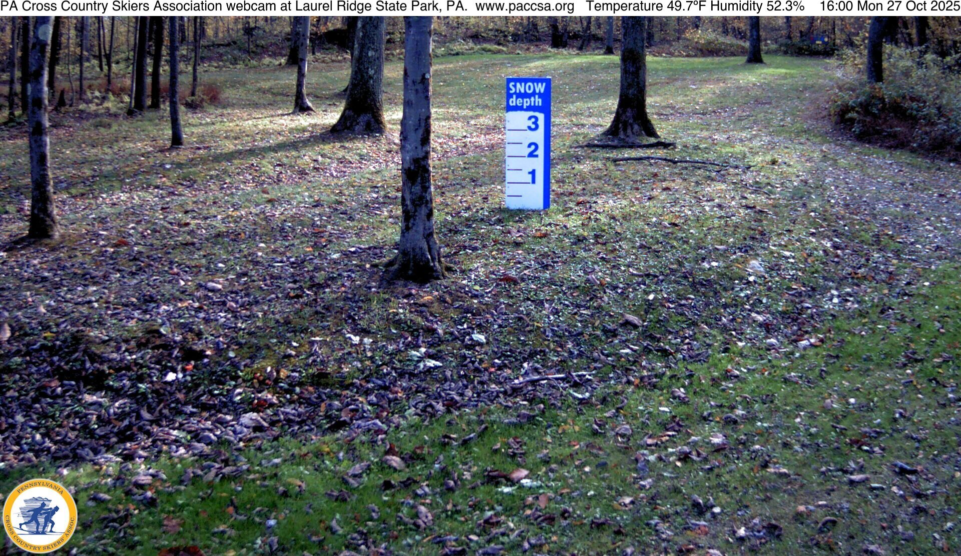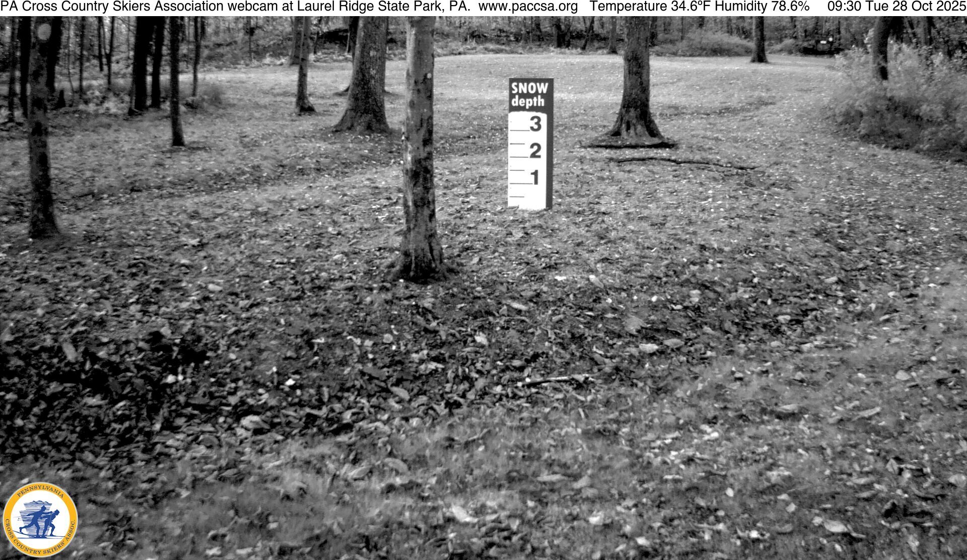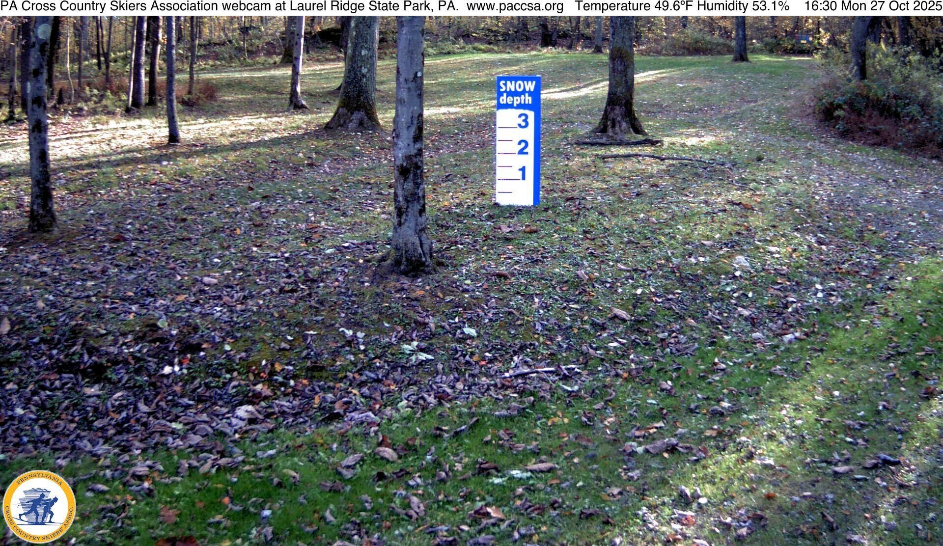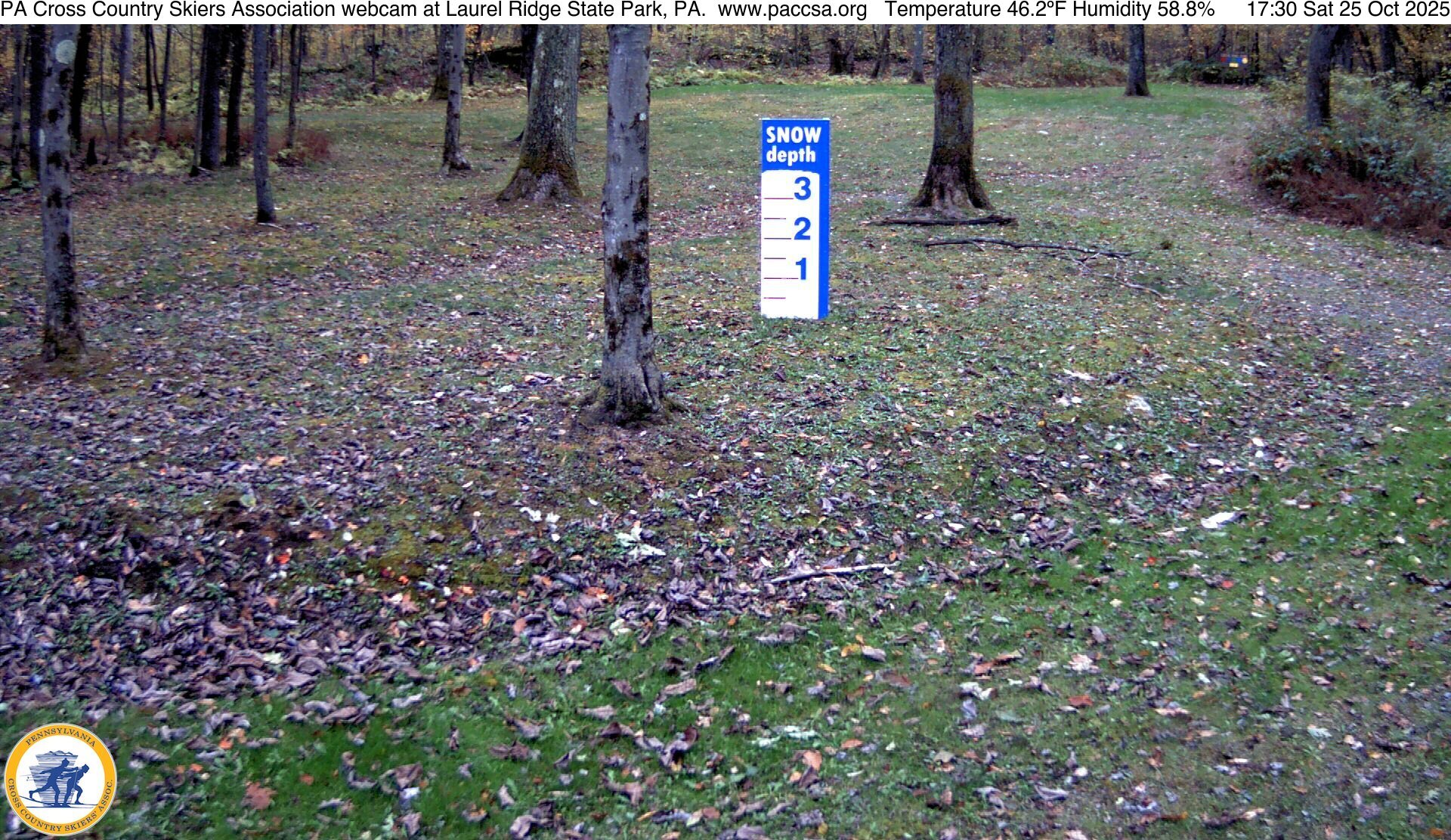 The webcam at Laurel Ridge State Park cross country ski area is owned and maintained by PACCSA, with the support of DCNR and donations from the public. Thank you to everyone who has contributed. The webcam operates from fall to spring, taking a photo of the ski area every half hour from sunrise to sunset. The ground elevation where it is sited is 852 m, 2795 ft.