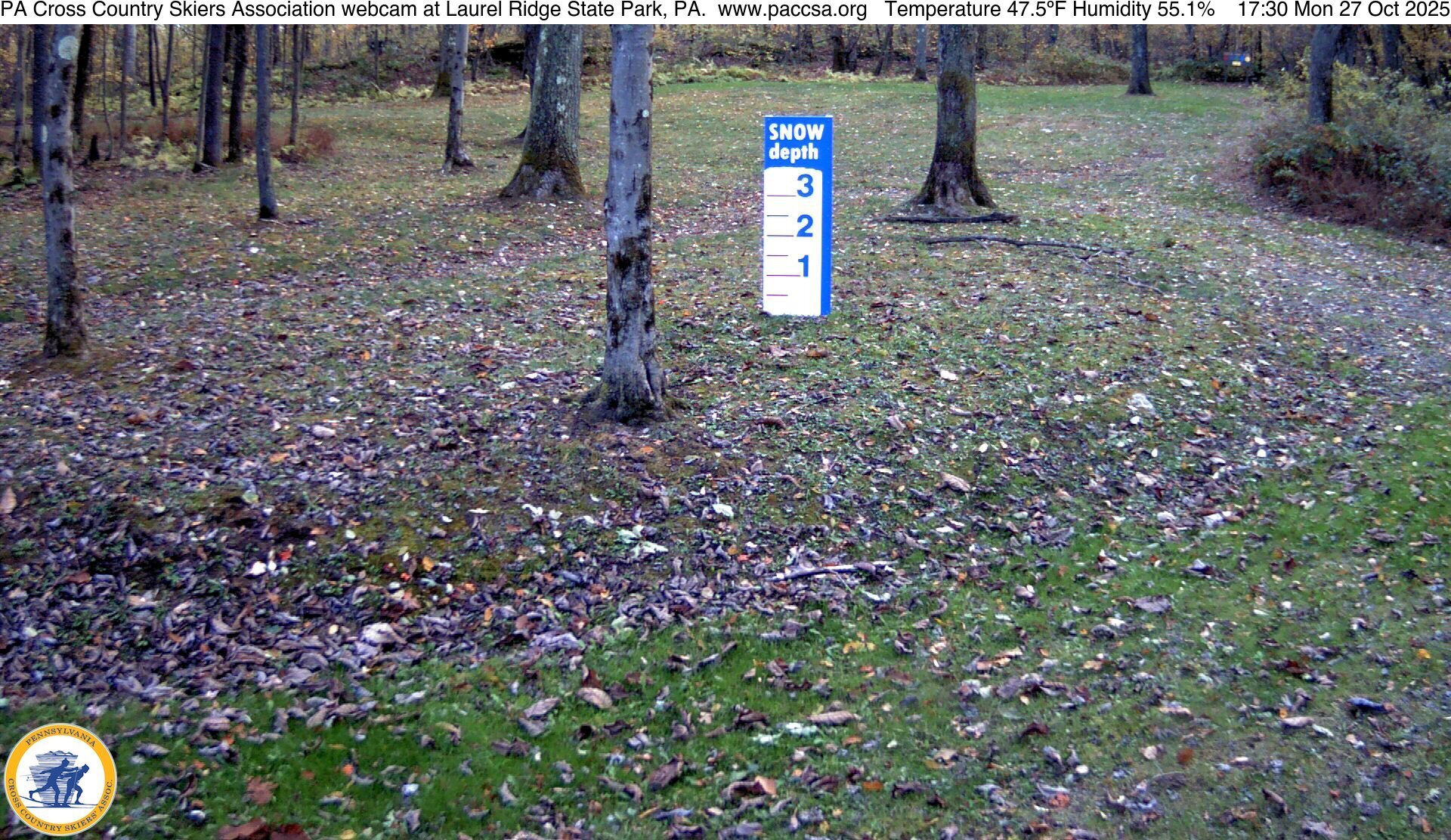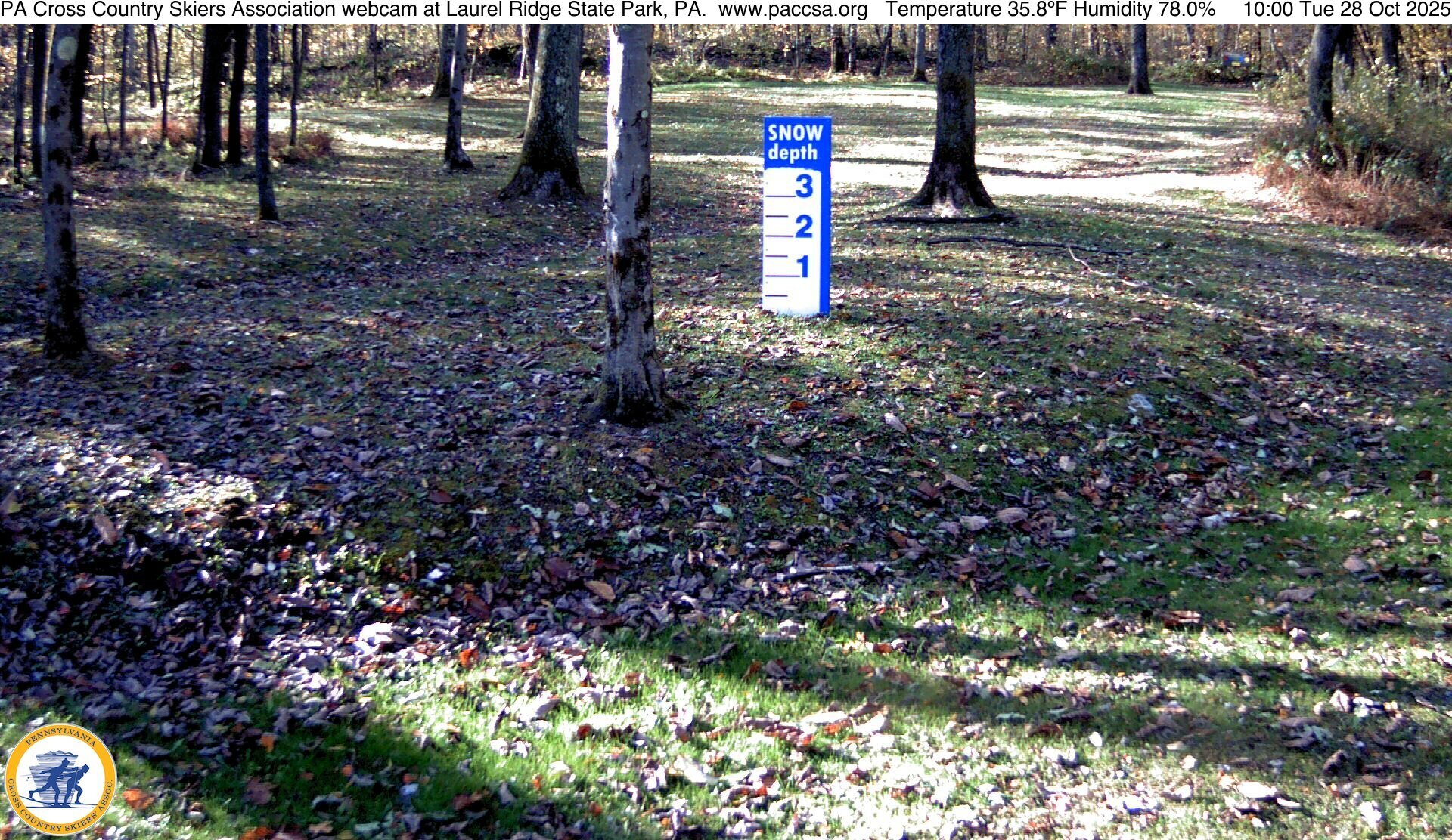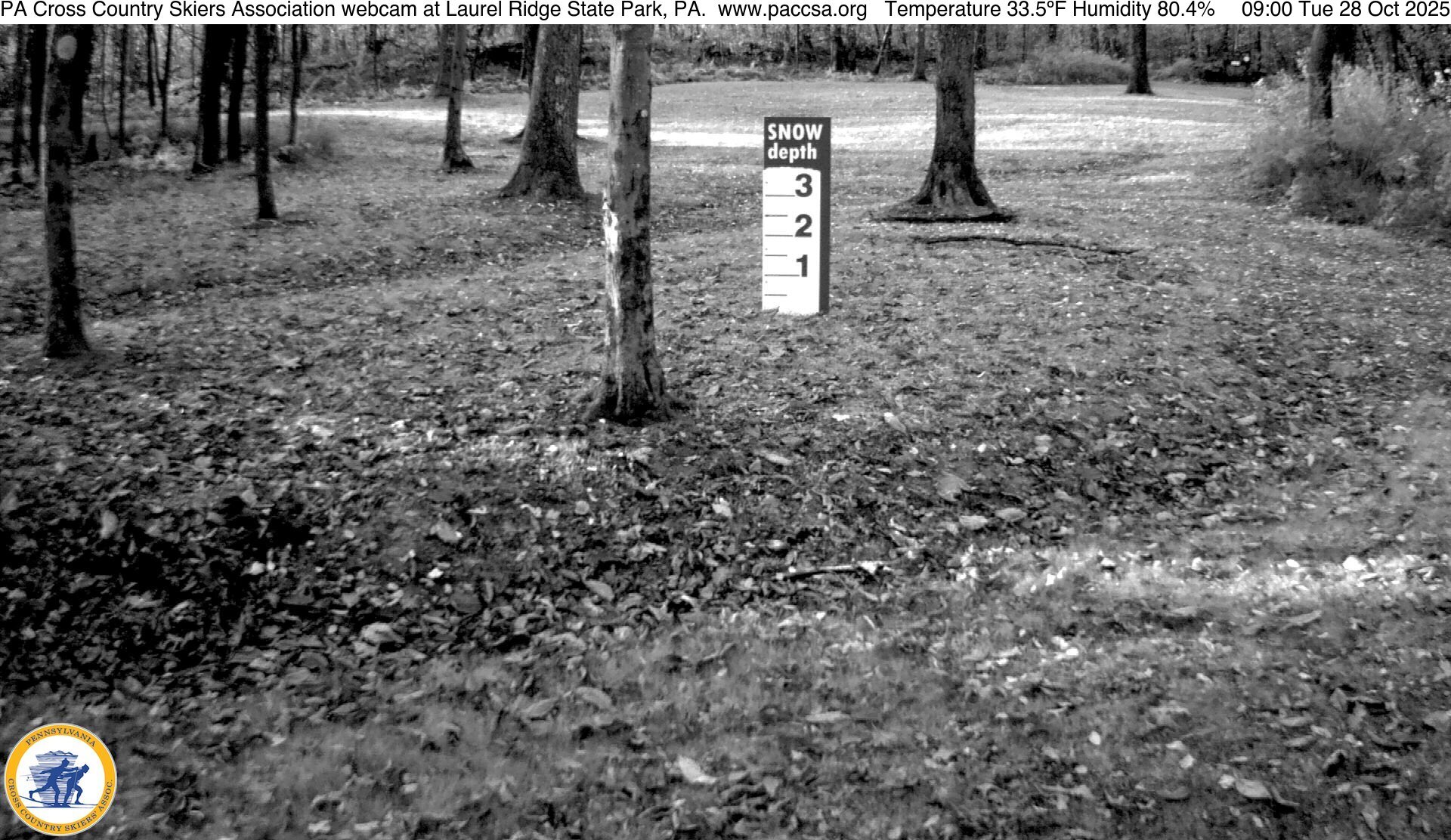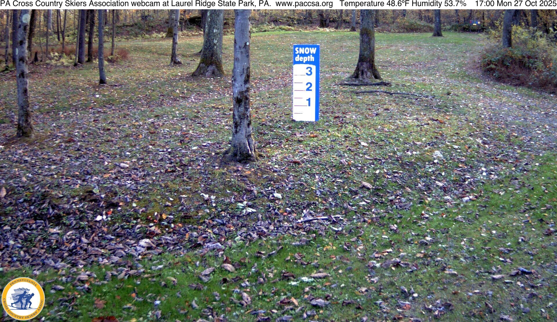 The webcam at Laurel Ridge State Park cross country ski area is owned and maintained by PACCSA, with the support of DCNR and donations from the public. Thank you to everyone who has contributed. The webcam operates from fall to spring, taking a photo of the ski area every half hour from sunrise to sunset. The ground elevation where it is sited is 852 m, 2795 ft.