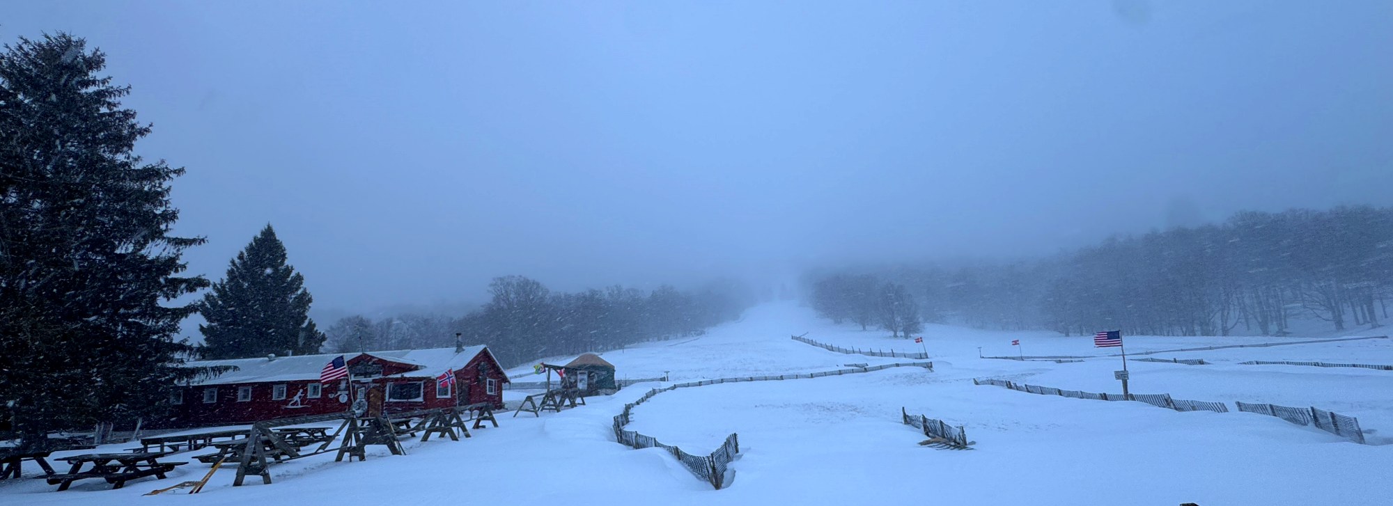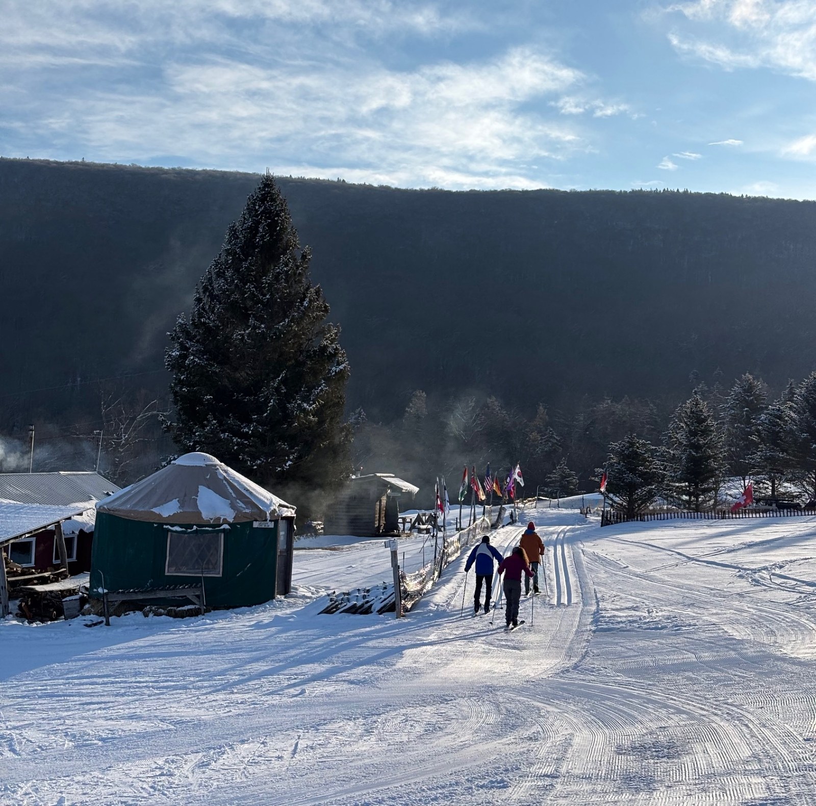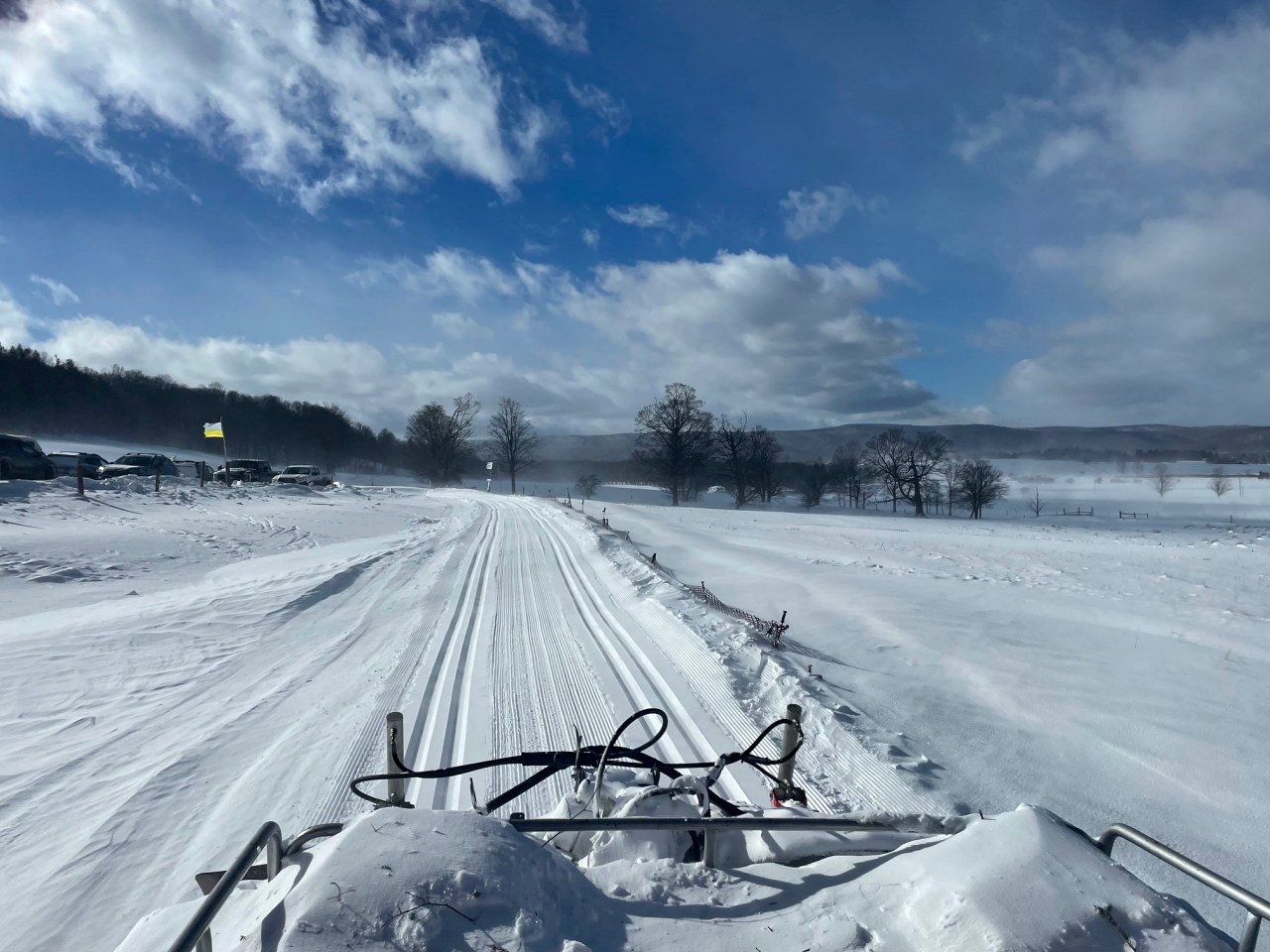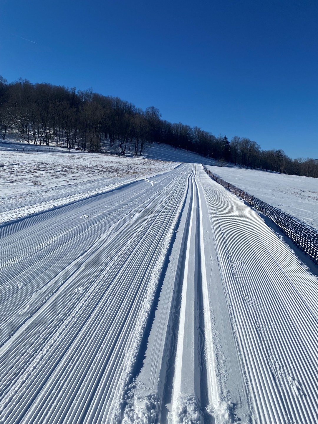 All trails open 2"-10" depending on elevation. We sell our rental gear daily if you need anything. Full sales shop, repairs, ski school, cafe, special events, and a huge trail system over 2500 acres. 1200 vertical rise and fall with hundreds of intersections. Opened in '79, kids trade in program, trails leading to two alpine ski areas for one run lifts back to the top. Come ski with us sometime!