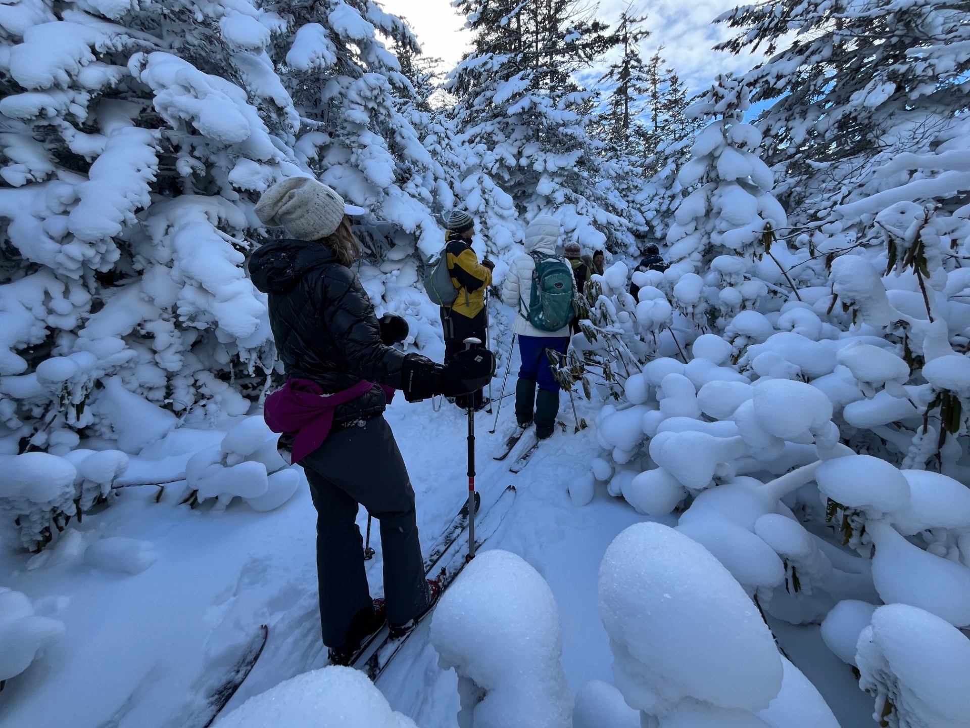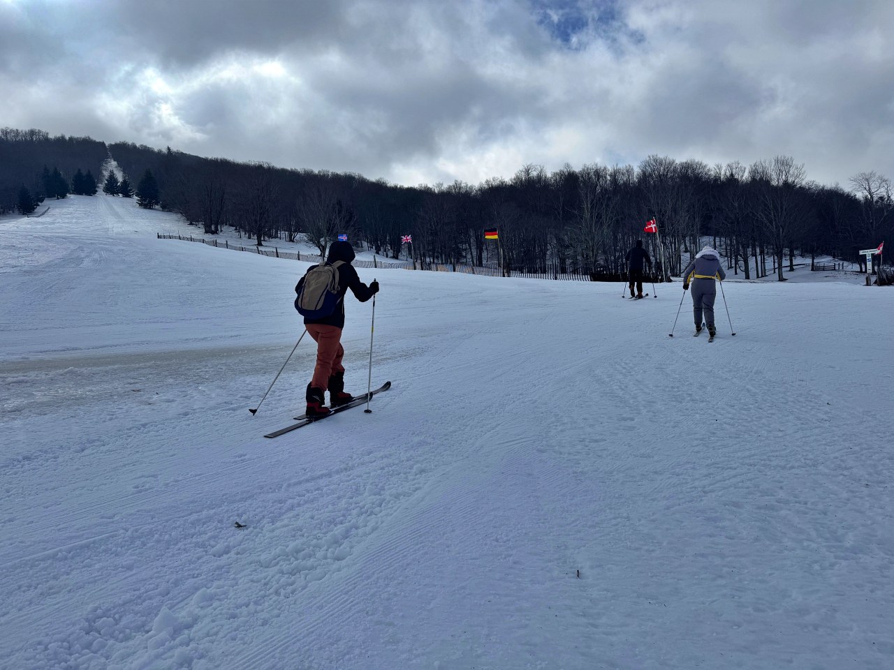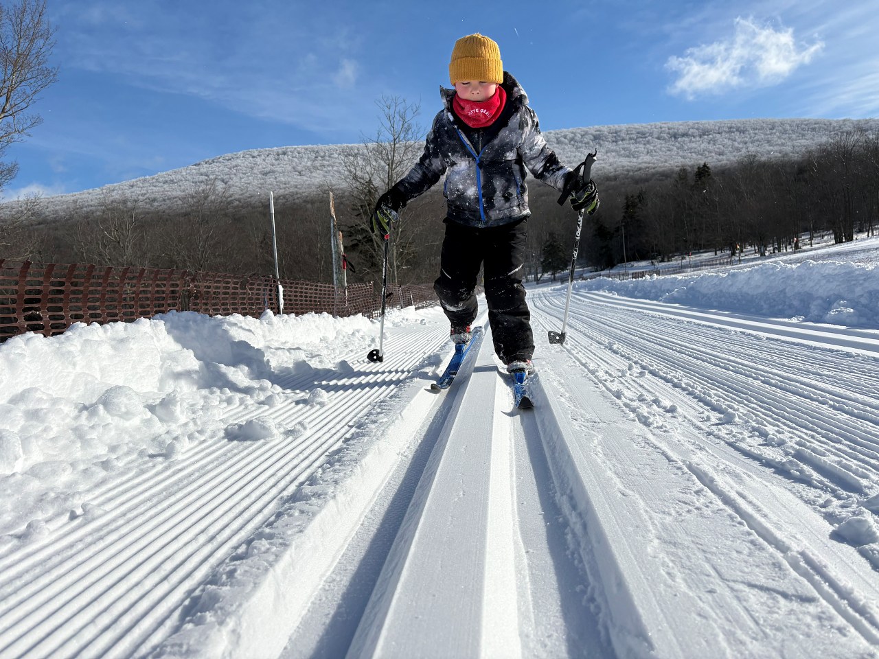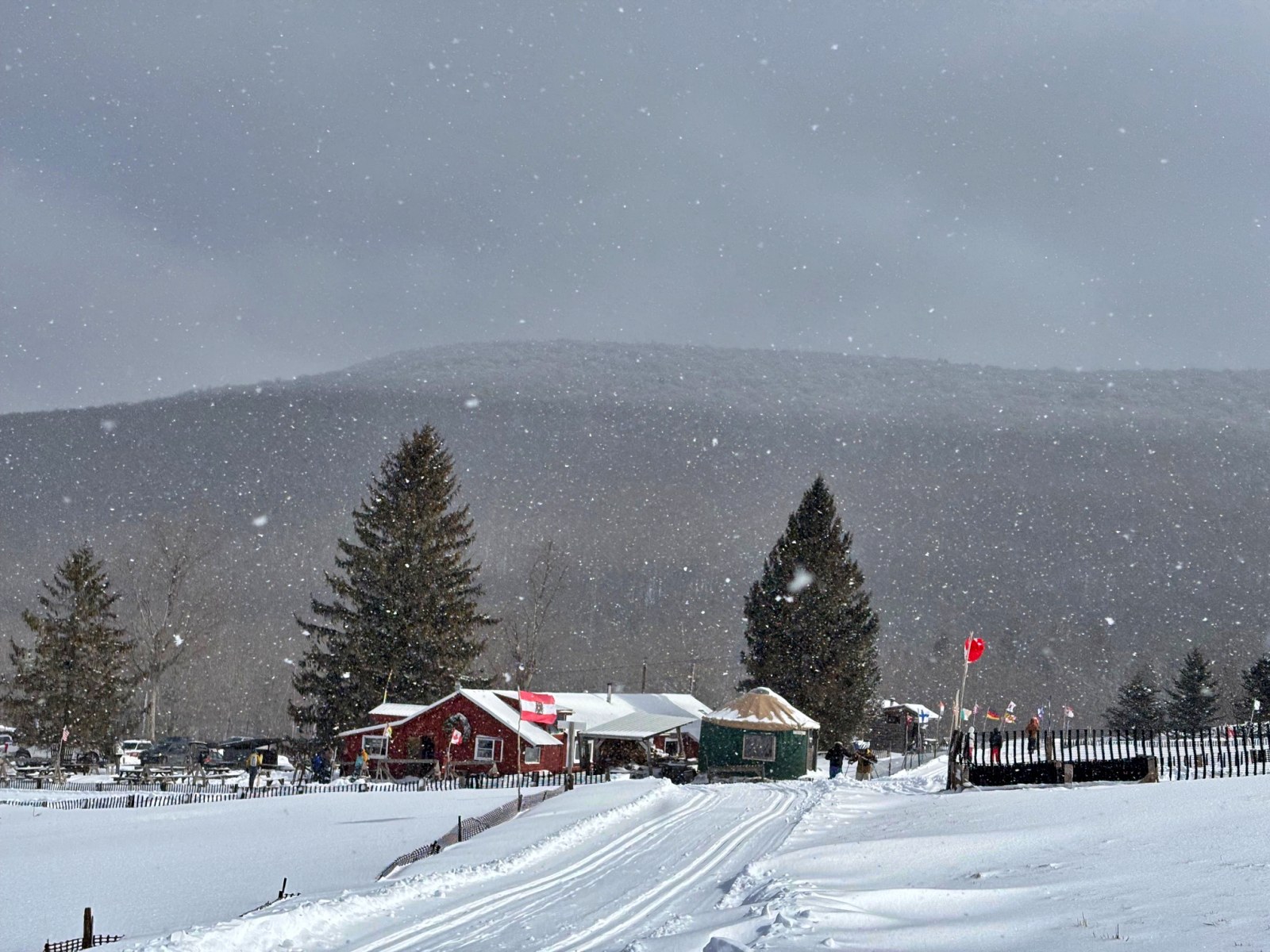 All trails open 2"-10" depending on elevation. We sell our rental gear daily if you need anything. Full sales shop, repairs, ski school, cafe, special events, and a huge trail system over 2500 acres. 1200 vertical rise and fall with hundreds of intersections. Opened in '79, kids trade in program, trails leading to two alpine ski areas for one run lifts back to the top. Come ski with us sometime!