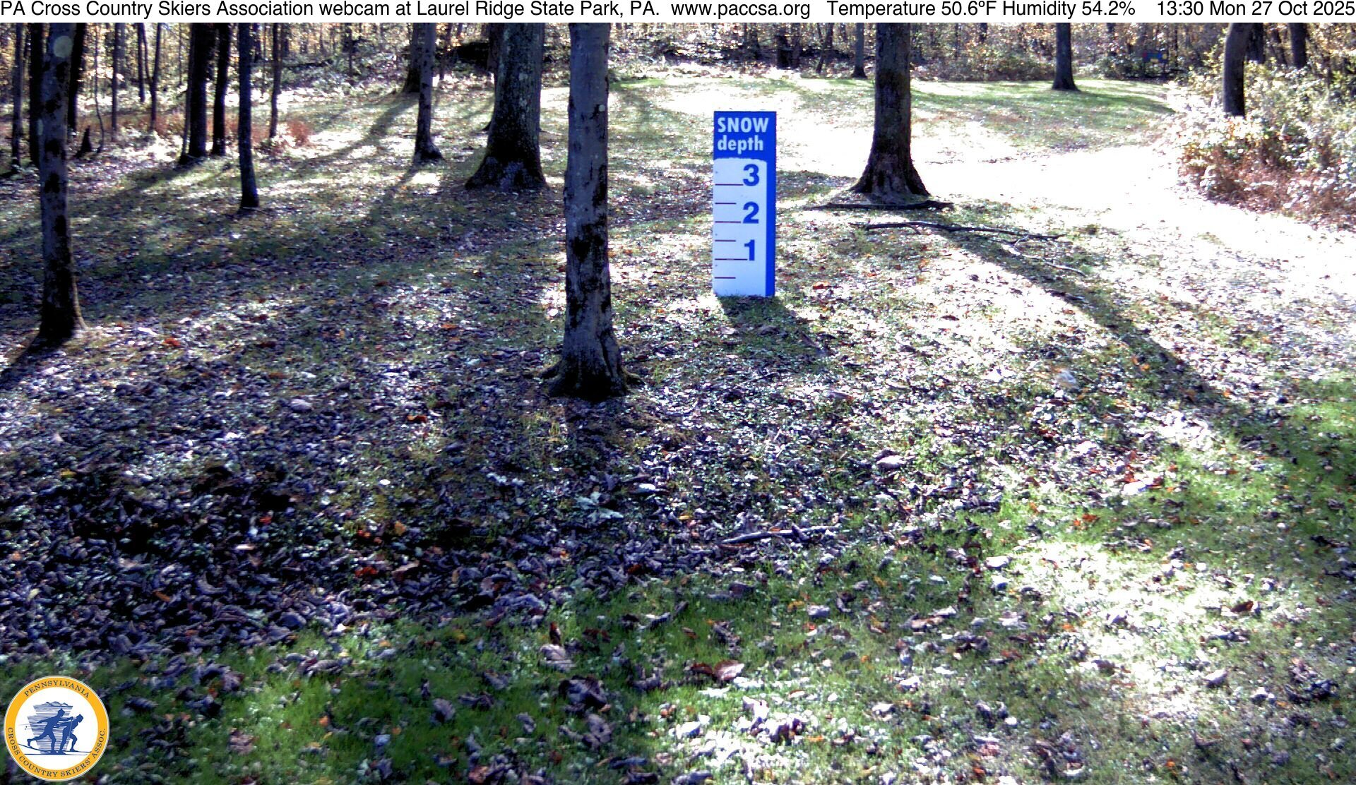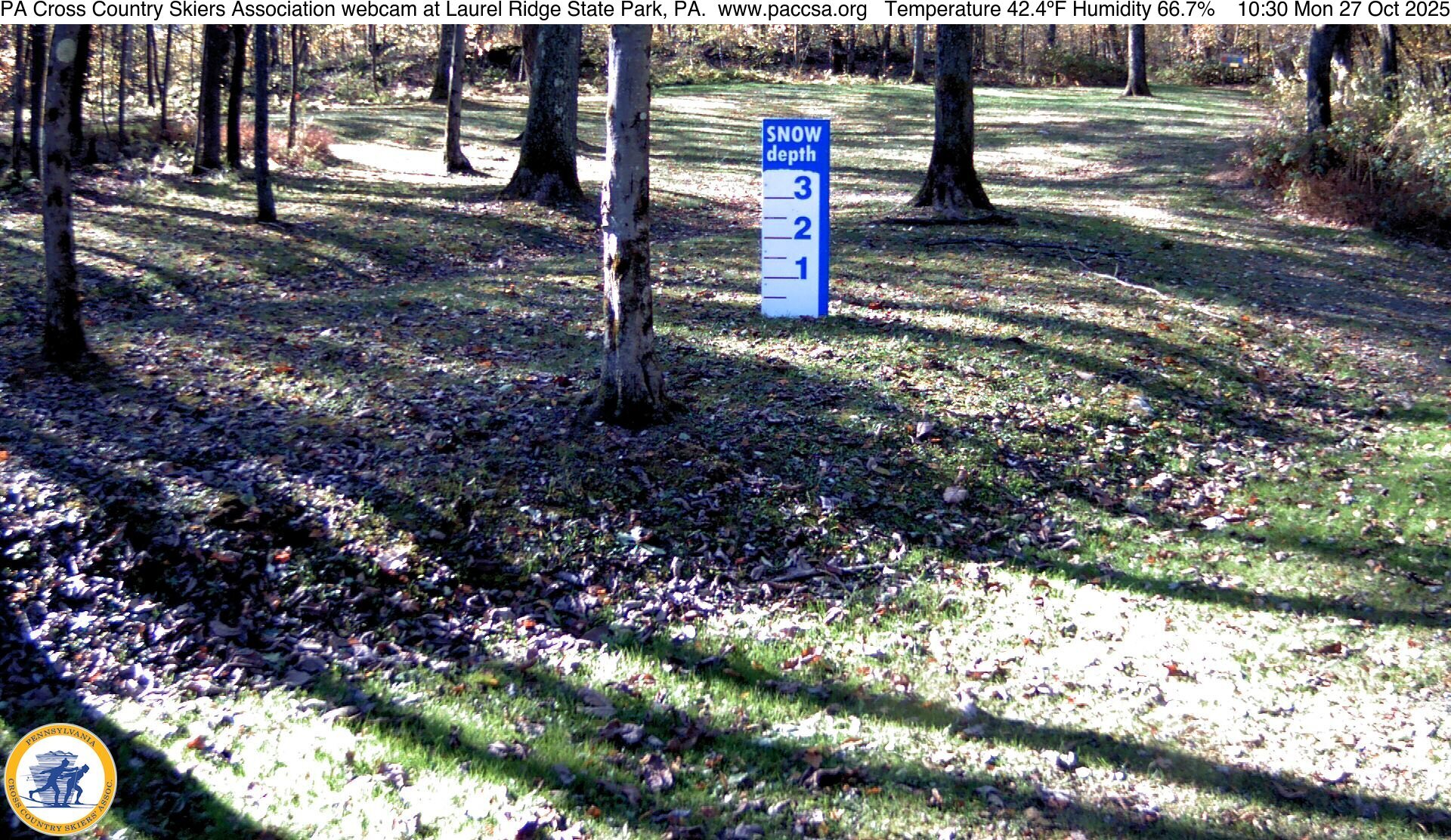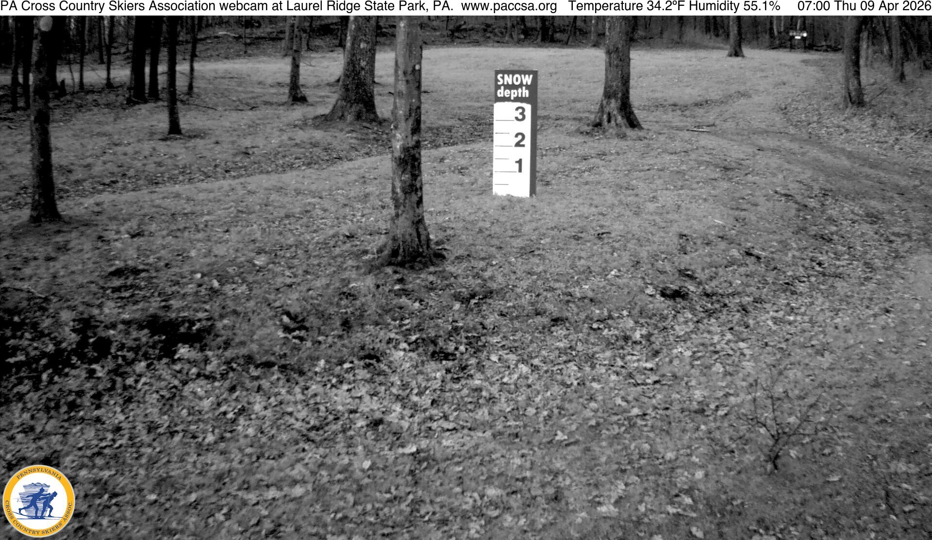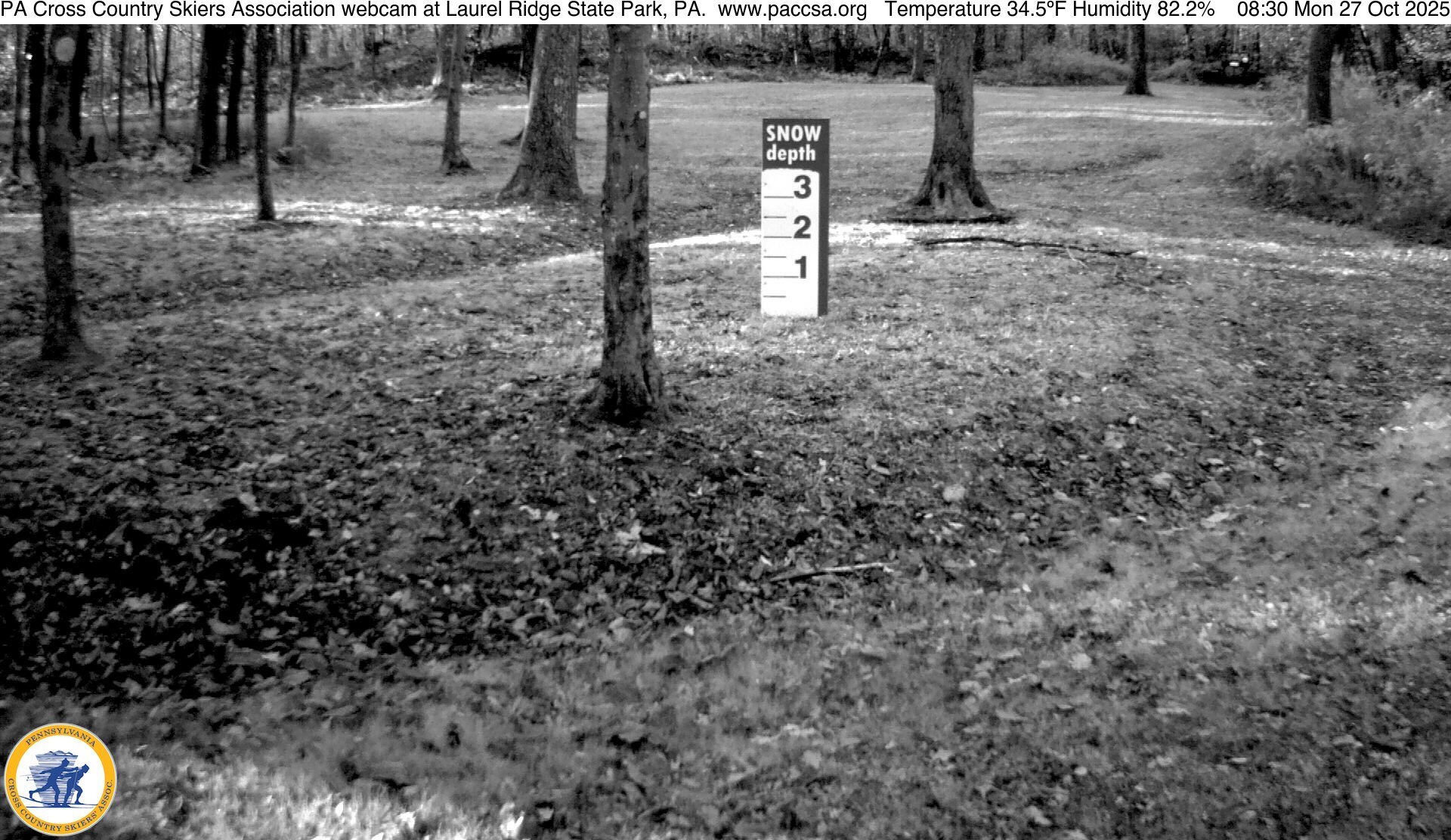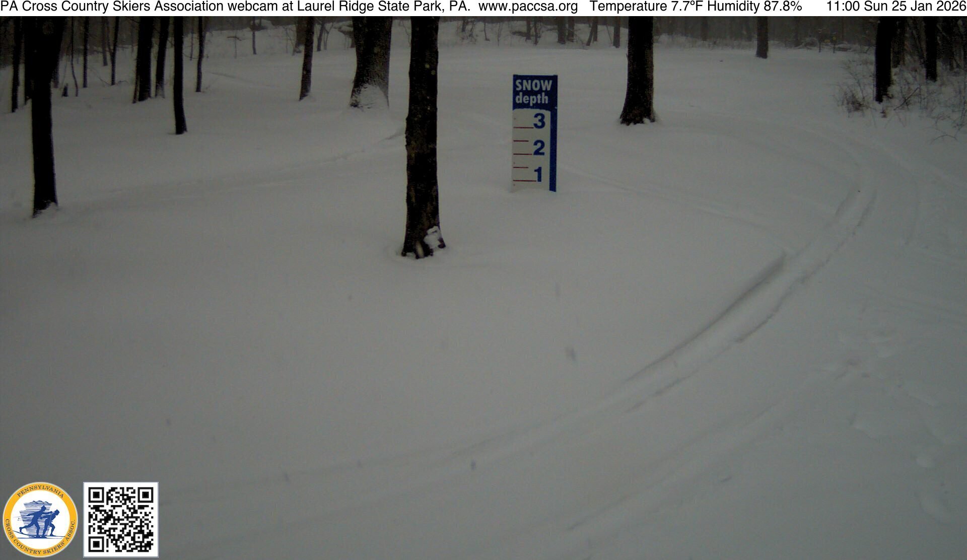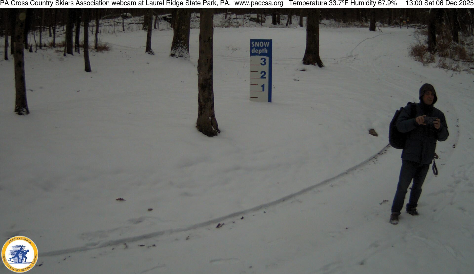 The webcam at Laurel Ridge State Park cross country ski area is owned and maintained by PACCSA, with the support of DCNR and donations from the public. Thank you to everyone who has contributed. The webcam operates from fall to spring, taking a photo of the ski area every half hour from sunrise to sunset. The ground elevation where it is sited is 852 m, 2795 ft.