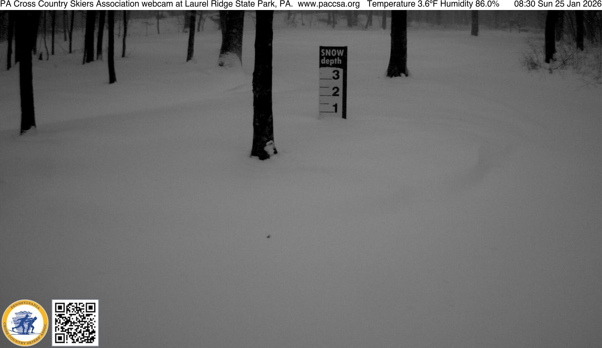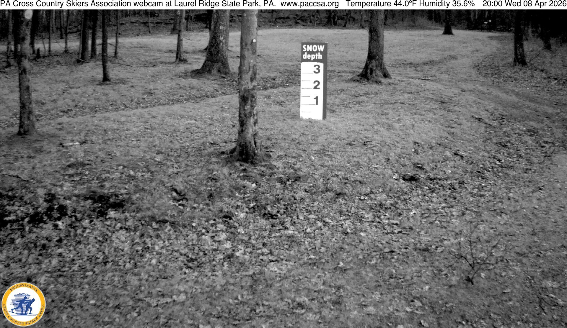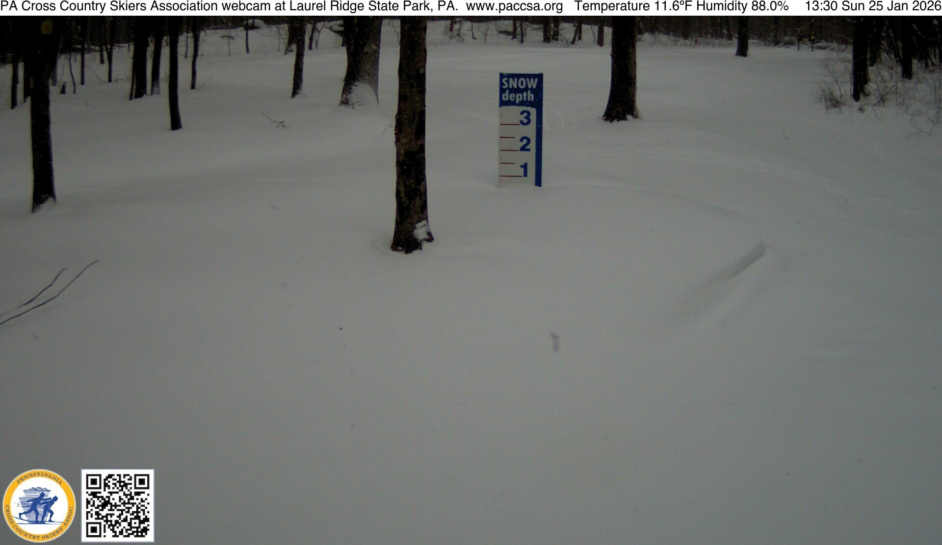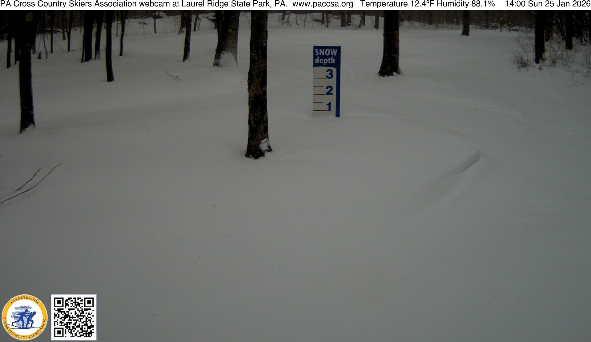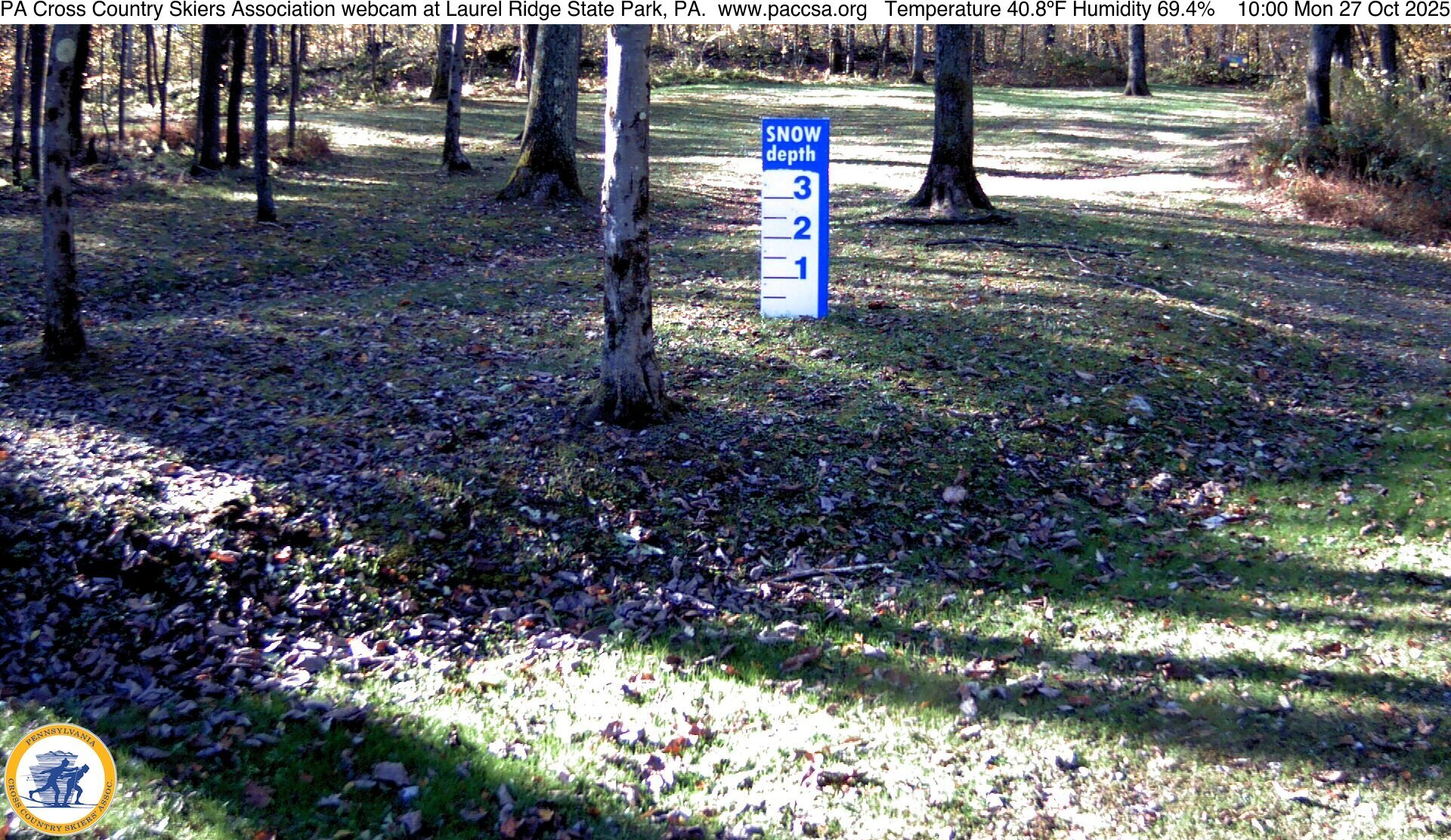 The webcam at Laurel Ridge State Park cross country ski area is owned and maintained by PACCSA, with the support of DCNR and donations from the public. Thank you to everyone who has contributed. The webcam operates from fall to spring, taking a photo of the ski area every half hour from sunrise to sunset. The ground elevation where it is sited is 852 m, 2795 ft.