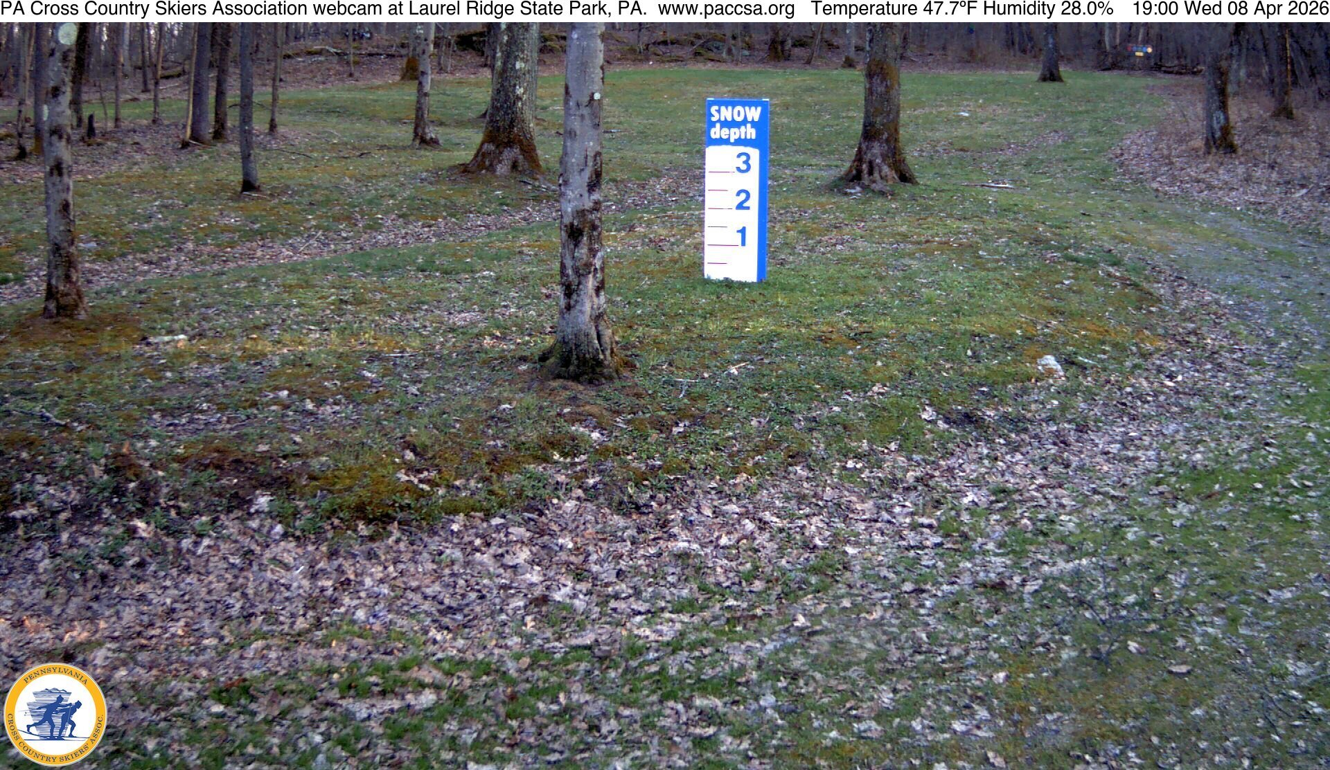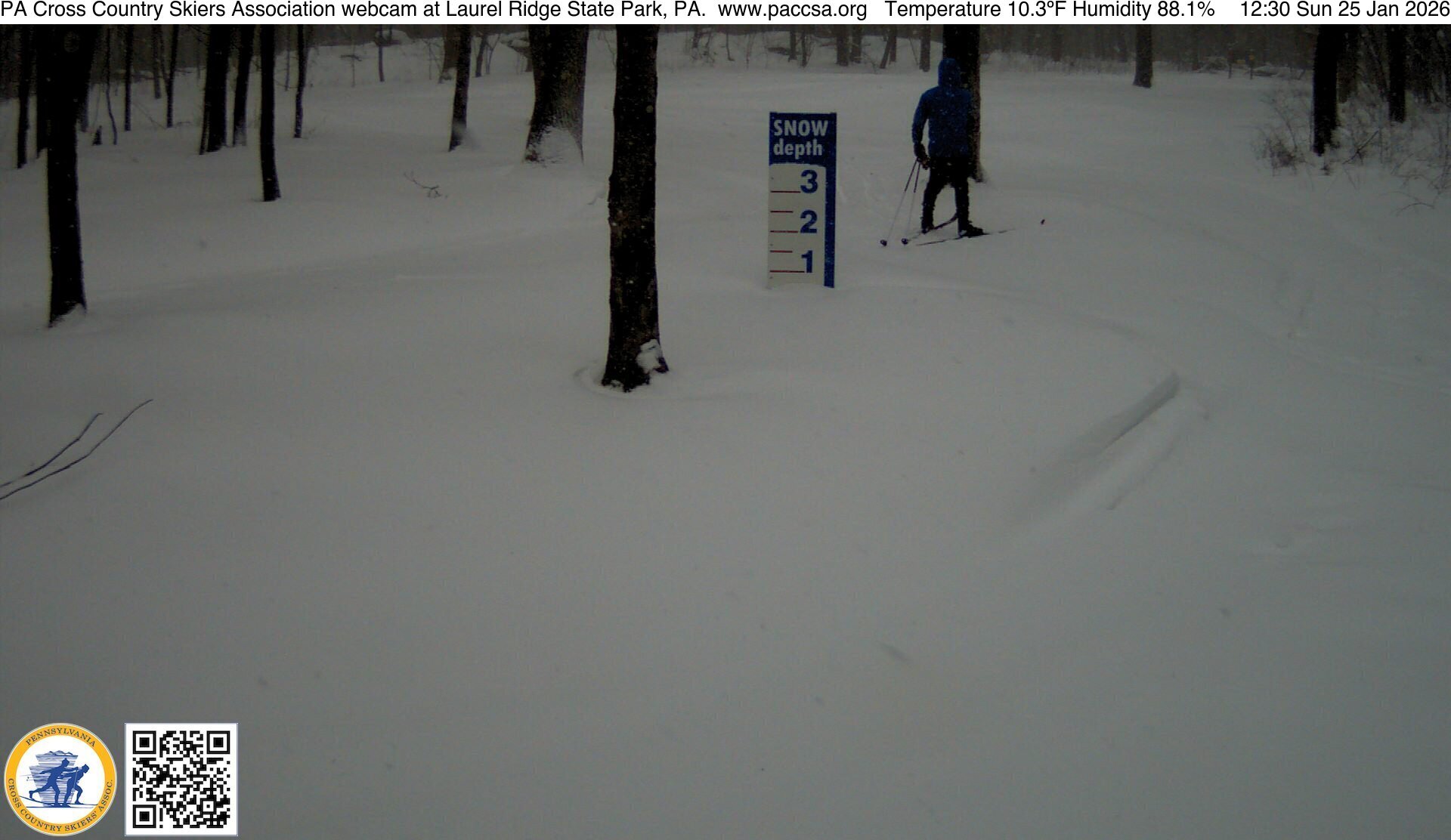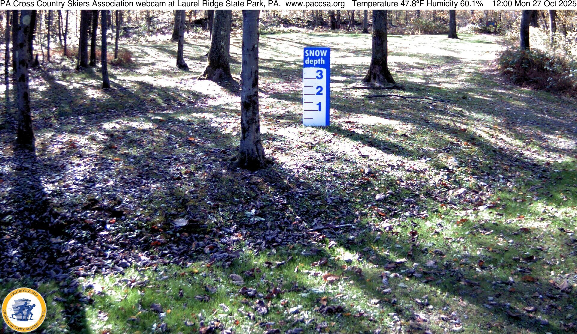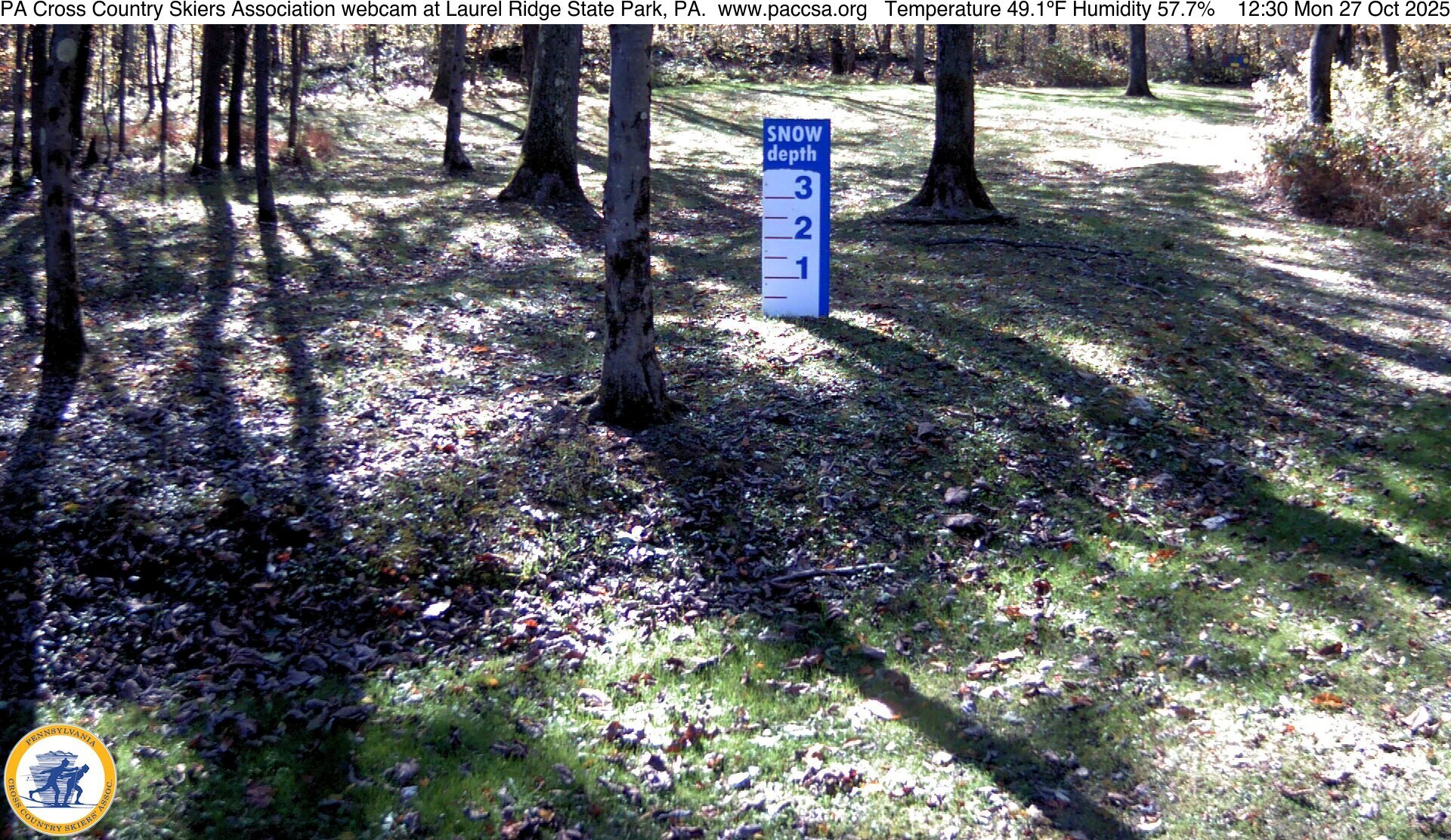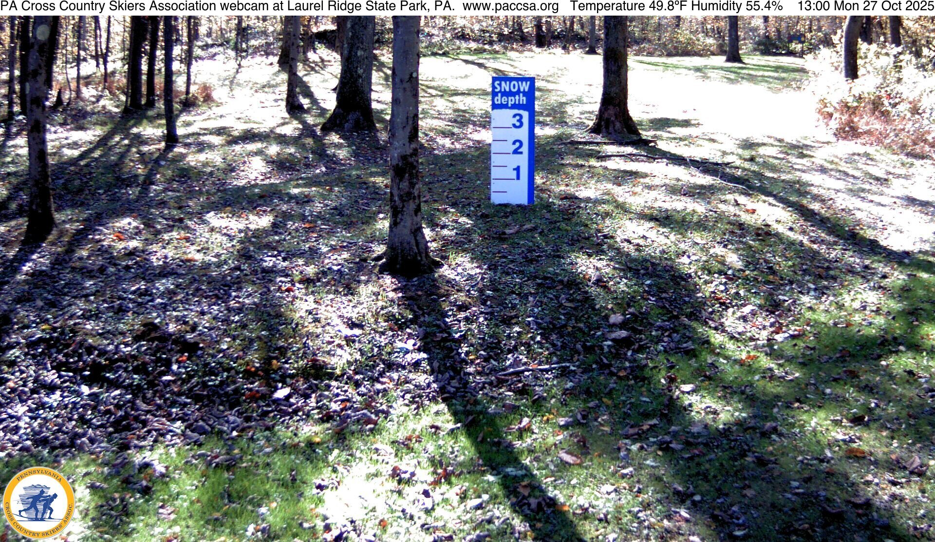 The webcam at Laurel Ridge State Park cross country ski area is owned and maintained by PACCSA, with the support of DCNR and donations from the public. Thank you to everyone who has contributed. The webcam operates from fall to spring, taking a photo of the ski area every half hour from sunrise to sunset. The ground elevation where it is sited is 852 m, 2795 ft.